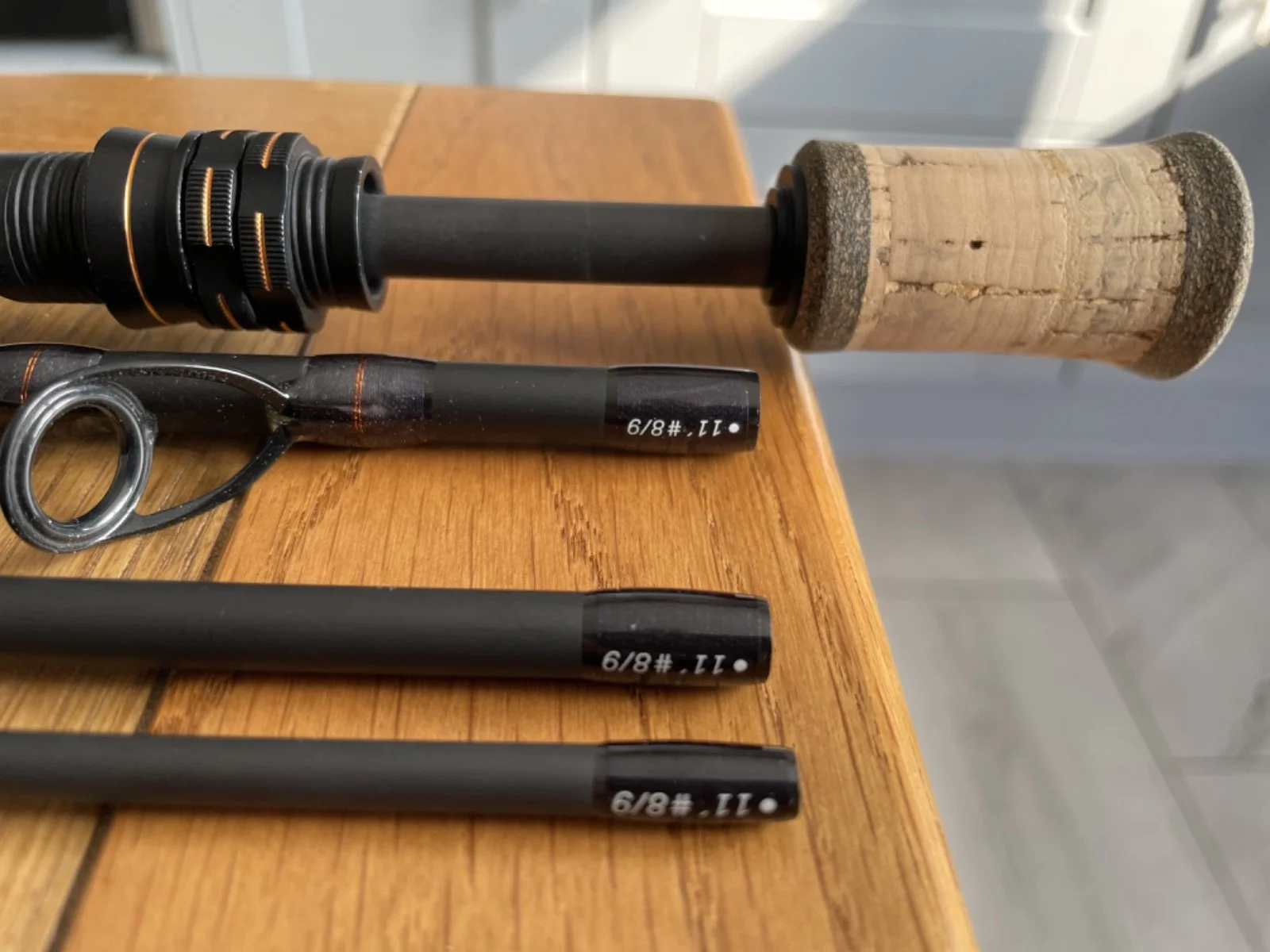 Guideline 11ft 8/9, 4 piece , fly rod, MK II version, has pull out extension handle for use in switch casting, 21g/24g lines or 8wf for overhead casting in single hand use. in great condition, no scratches or bumps with original bag and tube.