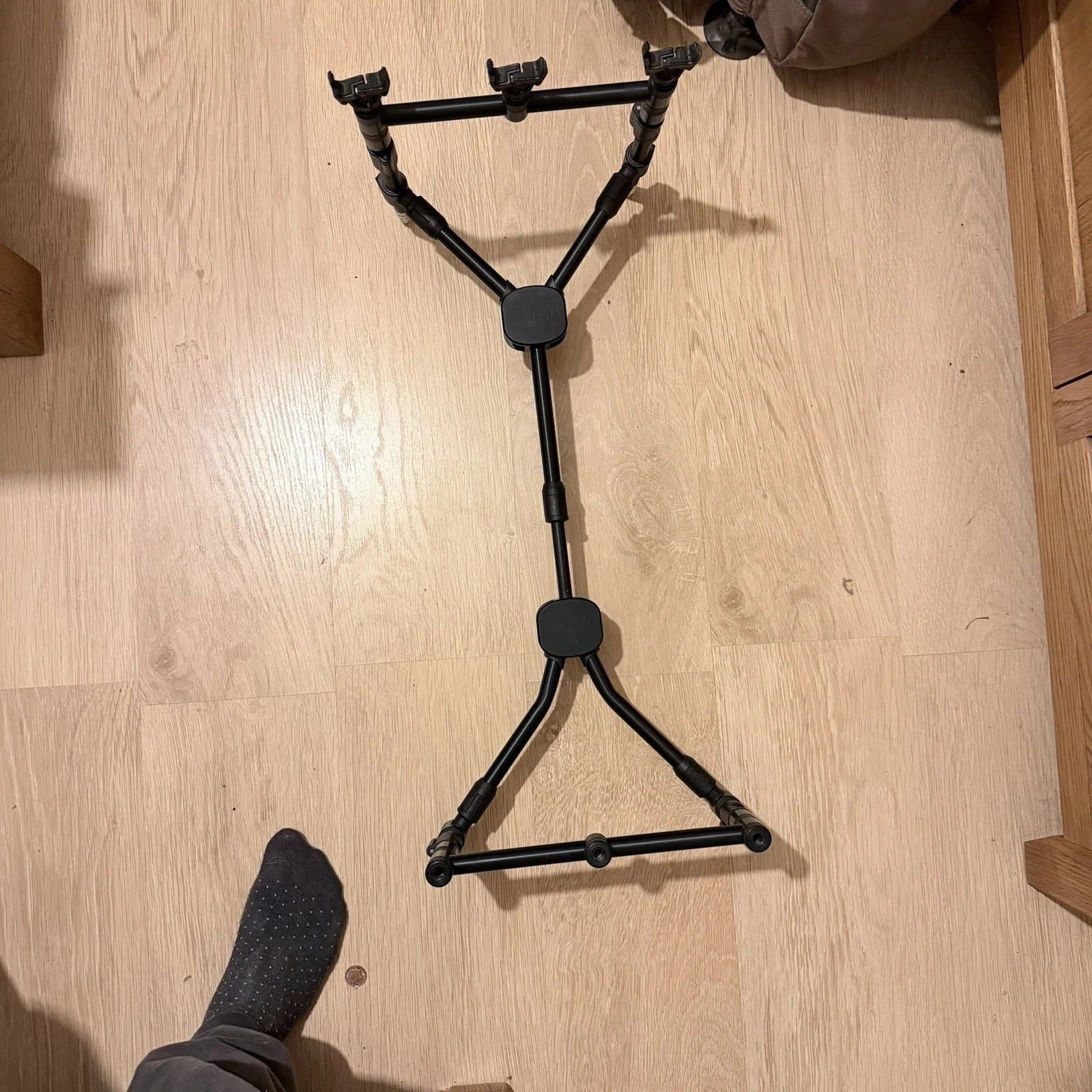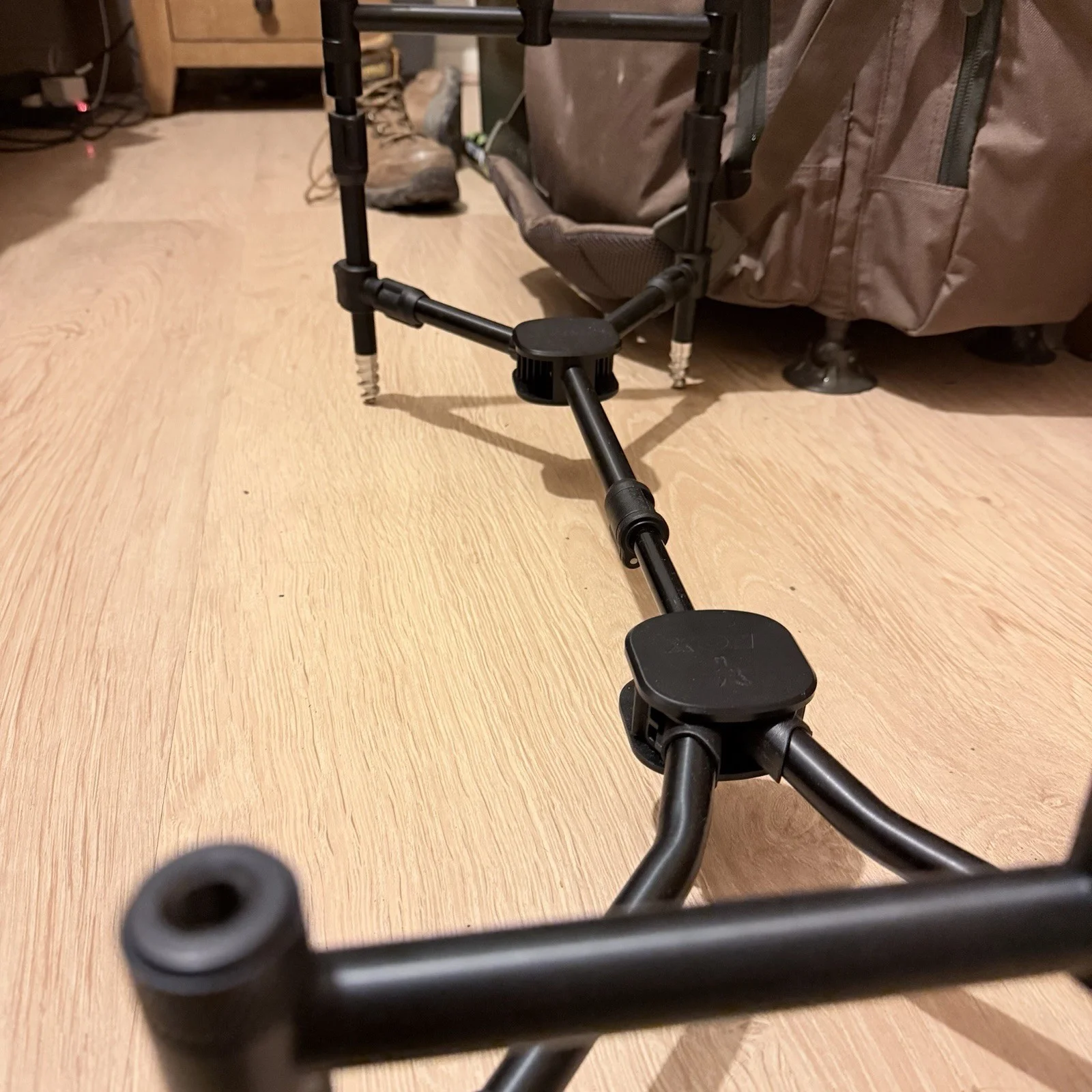 The Fox Black Label QR buzz bar is a high-quality, lightweight aluminium rod rest designed for use with up to 3 rods. The adjustable feature allows for fine tuning to ensure optimal rod placement, making it ideal for both men and women anglers. The sleek black colour adds a stylish touch to any fishing setup, making it a must-have for any fishing enthusiast looking to enhance their experience. AS GOOD AS NEW!