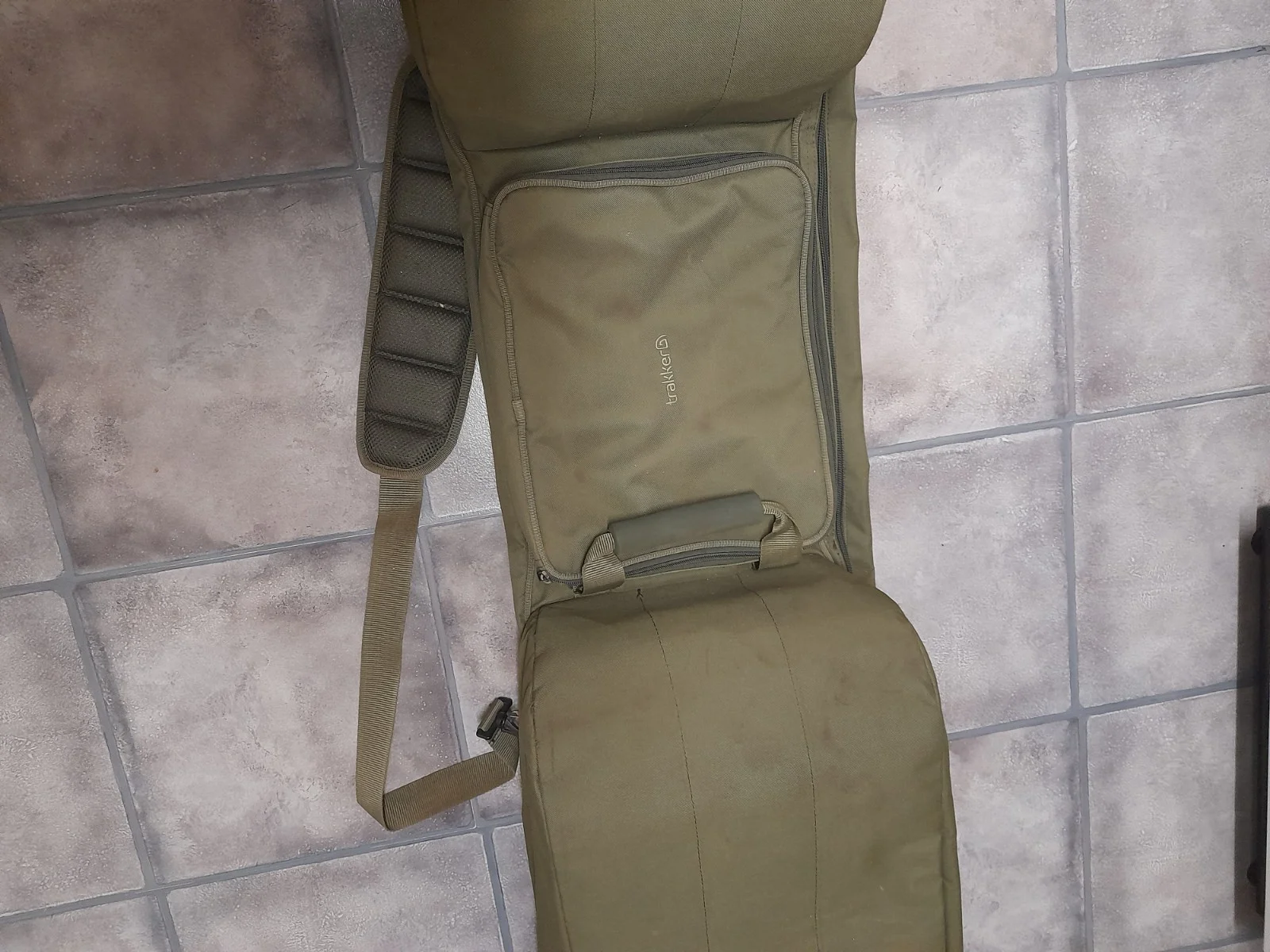 traker rodholdall holds 6 made up rods 12ft rods plus 2 long outta pockets and a square outta pocket also has built in velcro butt and tip protectorsthis is secondhand used and does have a couple of small hole to the bottom of the outa pocket and the main zip is a bit broke also it has marks here and there. however it is still in good usable condition with loads of life leftplease study pictures for overall conditionHappy biddingplease check out my other listings