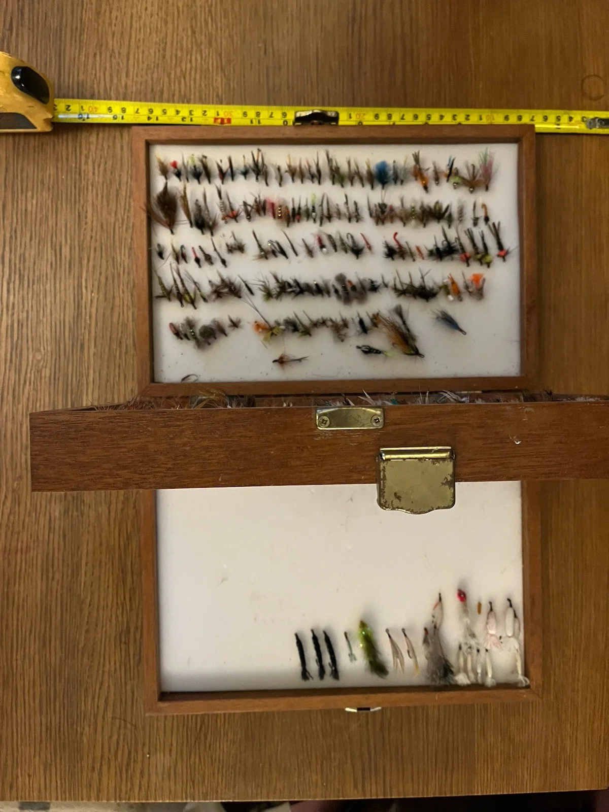 Twin Wooden Fly Box,with Lots Of Flies