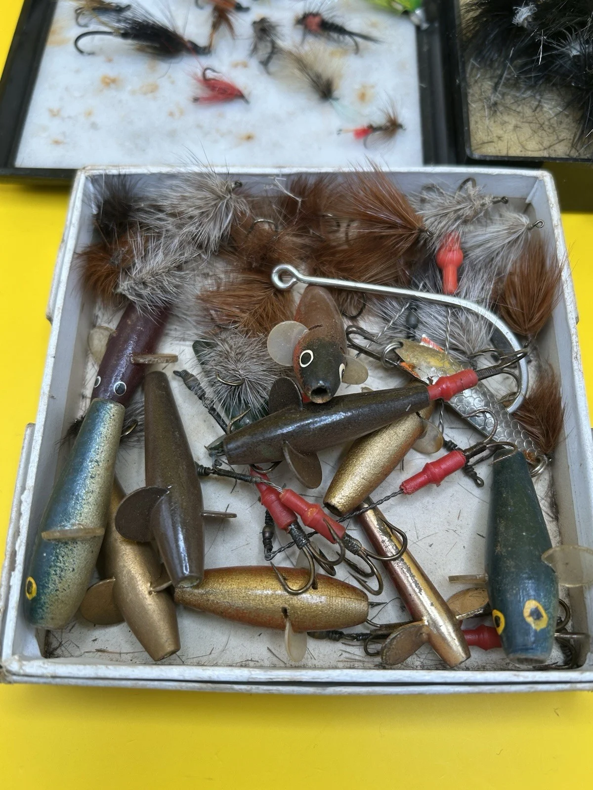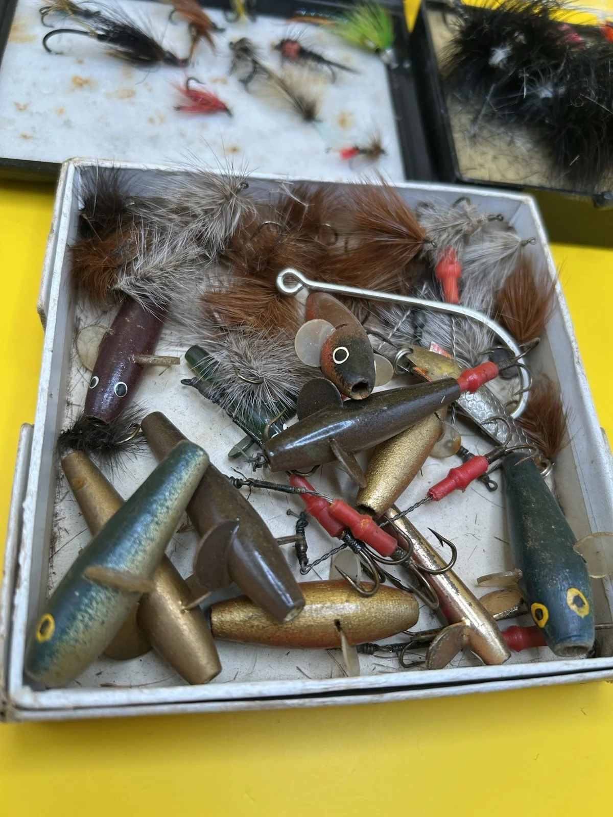 The product is a job lot collection of vintage fishing weights and lures specifically for fly fishing. This set includes a variety of vintage fly lures, ideal for fishing enthusiasts looking to add some nostalgia to their sporting goods collection. The collection offers a unique and historical connection to the sport of fishing, making it a valuable addition for those who appreciate classic fishing gear.Sold as seen in pictures, returns not available for this item. Everything pictured is included.