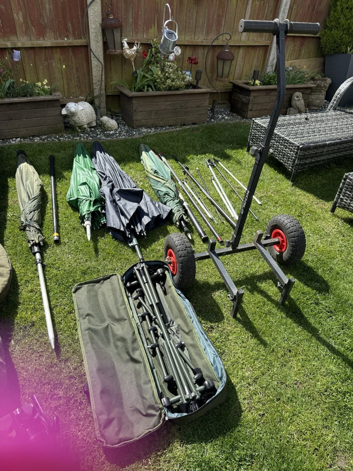 This job lot of fishing tackle includes a variety of essential items for any angler, such as rods, rod rests, umbrellas, trolley and other equipment. Perfect for those looking to enhance their fishing experience, this collection offers a range of high-quality sporting goods to help anglers reel in big catches. Whether you are a seasoned angler or just starting out, this assortment of fishing tackle is sure to meet your needs and make your fishing trips more enjoyable and successful.COLLECTION IN PERSON ONLY