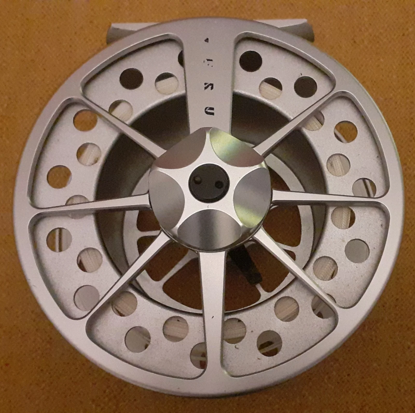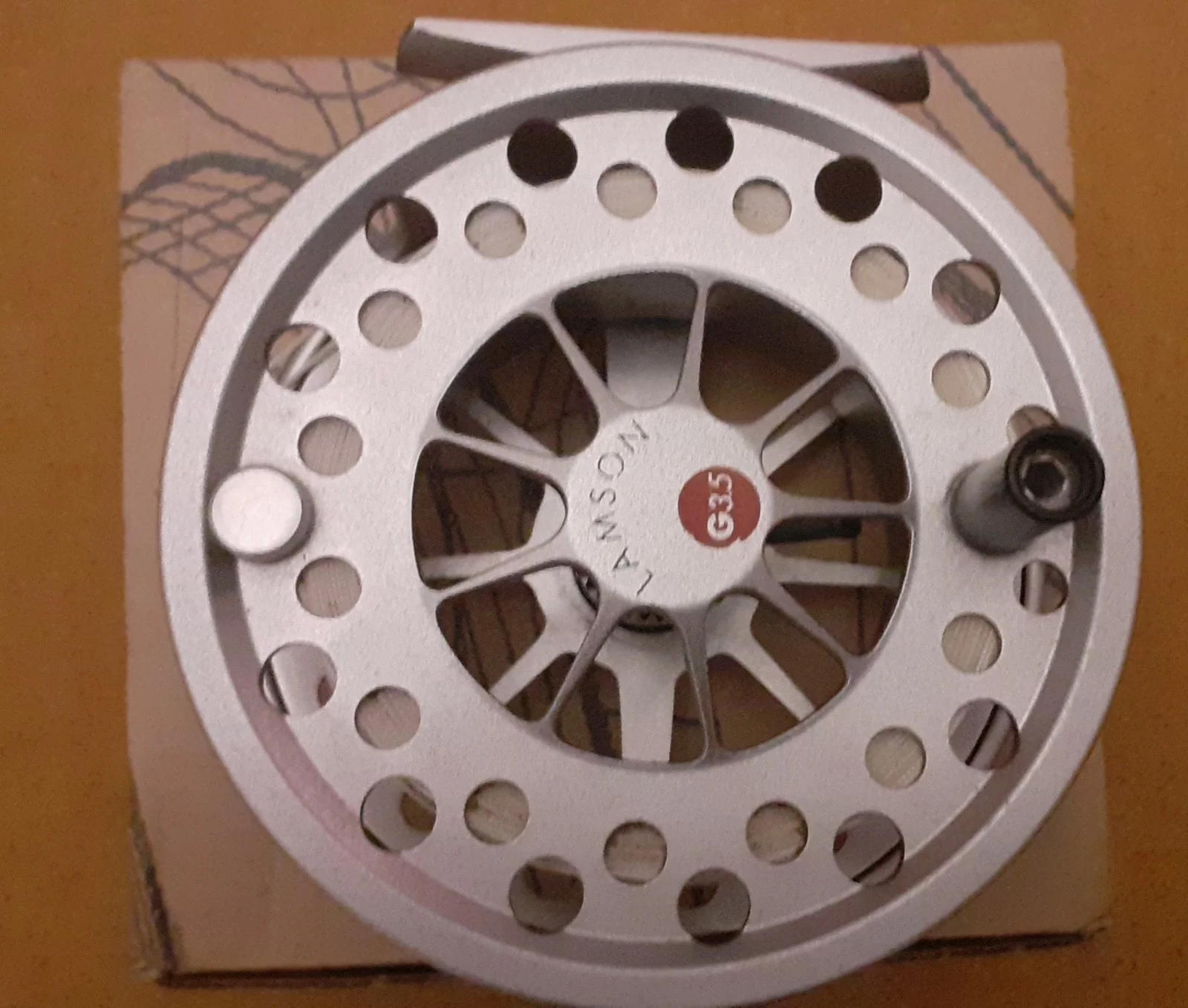 The Lamson Guru G 3.5 Fly Fishing Reel in Silver is a high-quality large arbor fly reel designed for freshwater fishing. With a sleek silver finish and a durable Lamson brand, this reel is set to right-hand but is easily converted to left-hand. Its compact size of 3.5 makes it perfect for small double hand or switch fly rods. The reel comes complete with high quality orvis 30lb white fly line backing. The reel is in excellent condition with no scratches or dings.
