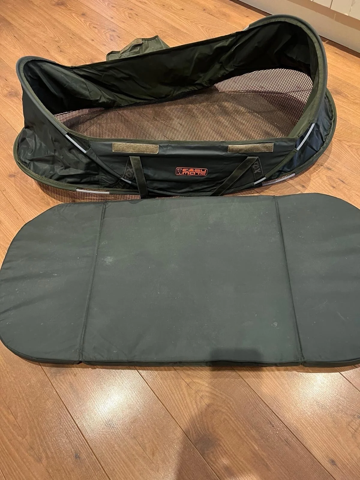 Used , slight rip on carry bag ( could be mended ) Carp cradle and mat in good condition