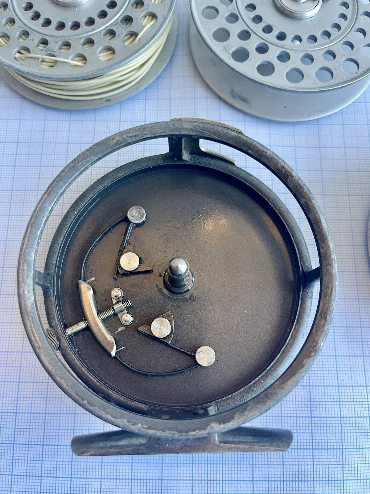 This reel was passed on to me over 50 years ago and it’s caught fish every season since then. I’m thinning out all my tackle so everything must go. It comes with two spare spools, one is empty and the other two are both loaded with Hardy Dry Fly DT-6 lines. It is currently set up for lefthand wind but is designed to be and can easily be changed to righthand. I’m sorry to see it go but have limited space