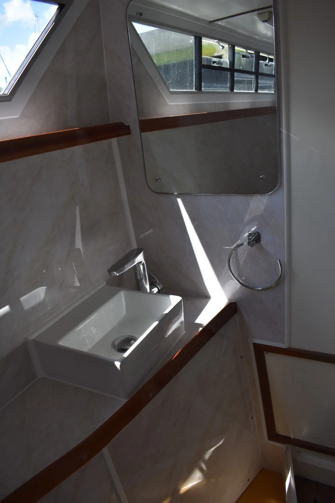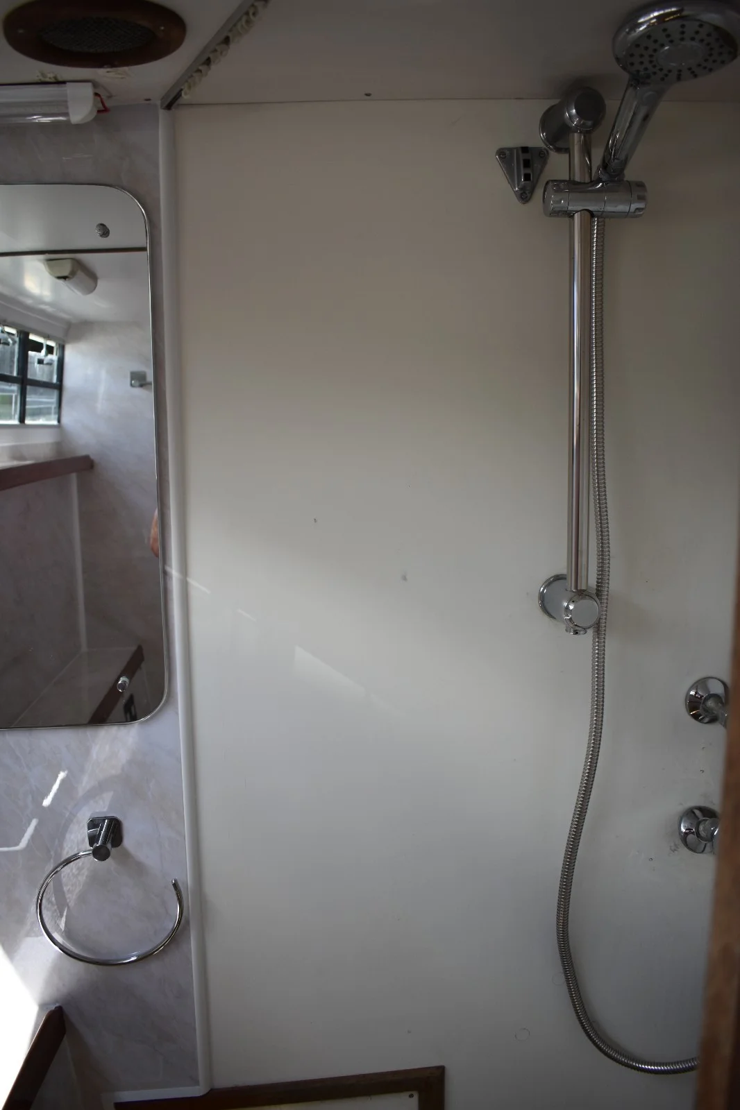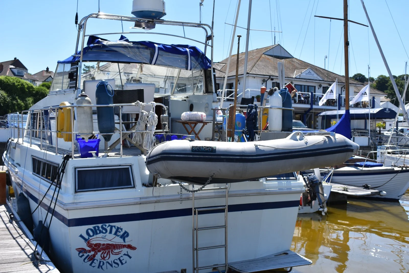 "Lobster" is a 42 foot twin screw motor yacht built by Broom Boats at Brundle Norfolk, in 1980. Originally registered and based in Guernsey she has been moored in Falmouth Marina since 1999. Cruising history includes voyages to London (Windsor), the Scillies, Brighton and the Channel ports and marinas. She has three sleeping cabins: A very comfortable double with its own head (electric toilet) and shower plus very generous storage and dressing table etc. Starboard twin cabin with up and over bunks and a "V" berth to the bow both served by a bathroom with half bath/shower and electric toilet. Saloon includes 32 inch TV and BlueRay player, 4 Arm chairs and L shaped Settee. A recently refurbished galley has twin sinks plus glass topped four point electric hob, toaster and microwave. Hot water is provided by a very efficient immersion heater via shore power or a newish generator. A multi-point "Constavolt" ensures domestic, generator and engine batteries are fully charged at all times. Navigation equipment includes saloon ("Sailor") and bridge mounted radios, Garmin sat nav and depth finder. Command position is from Bridge only as the saloon engine control system has been disconnected. New propellors and refurbished drive shafts were fitted in 2025. Engines are Volvo TAMD 60Bs. The starboard engine is currently requiring major repair to the fuel injection system which the current owner - currently being treated for serious illness - is unable to undertake or organise. Details of repairs necessary can be obtained via the engineer handling repair on request. (07841576171)At over 45 years of age Lobster's long range cruising days are probably in her past but and given the need for some work, she would make an ideal and attractive "live aboard" with a full range of domestic facilities already available and fully functioning. Lobster can be viewed at Falmouth Marina by arrangement.
