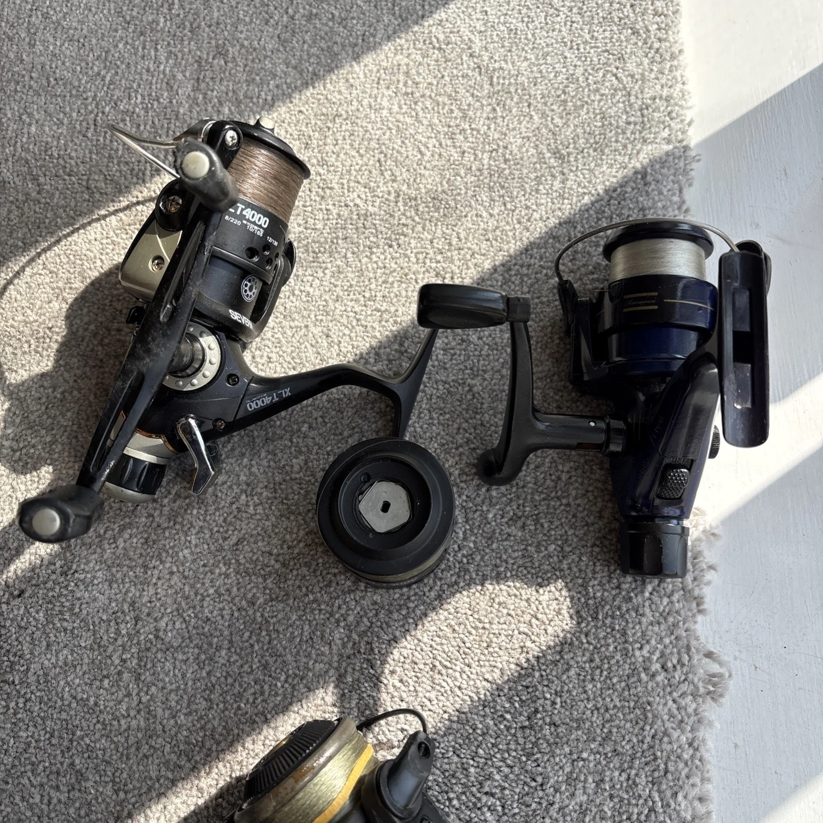 3 reels 2 x Shakespeare and 1 x brabus seven barbel bite n run reel all in working order 2 x come with spare spools 1x anti reverse a bit dodgy.The brabus reel the rubber handle has be knawed by mice.Grab yourself a bargain.