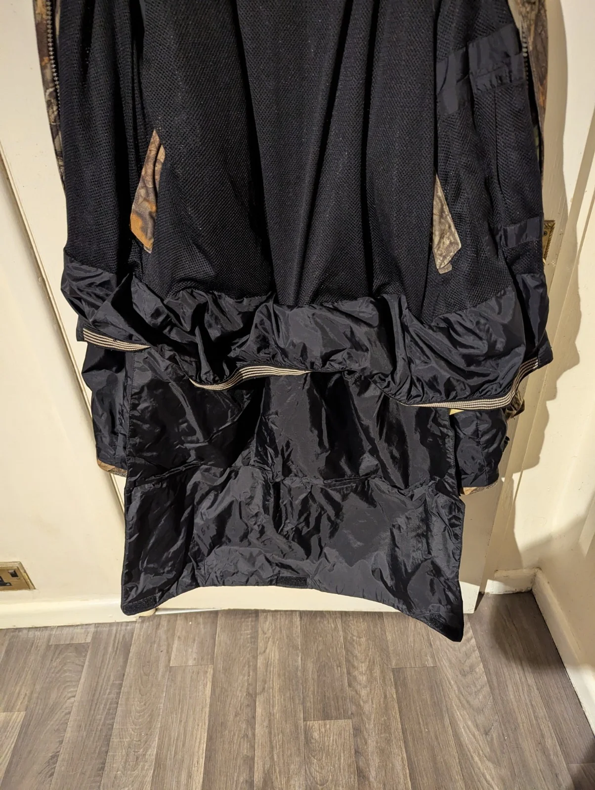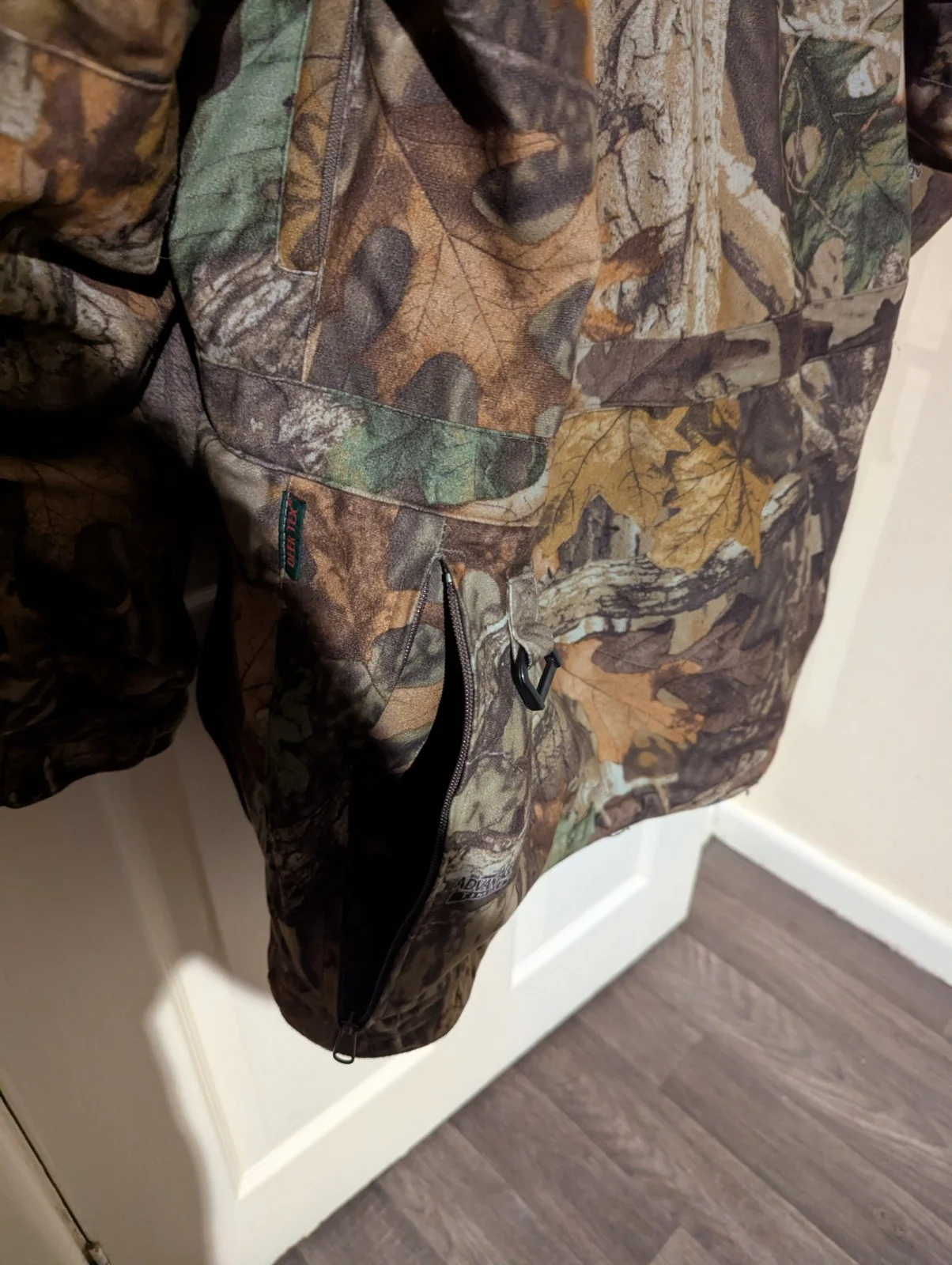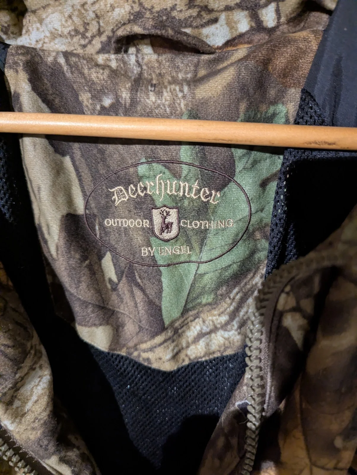 Deer hunter jacket , advantage timber camo , size large with hood , rear poachers pocket and internal fold out seat for when sitting for long periods of time.