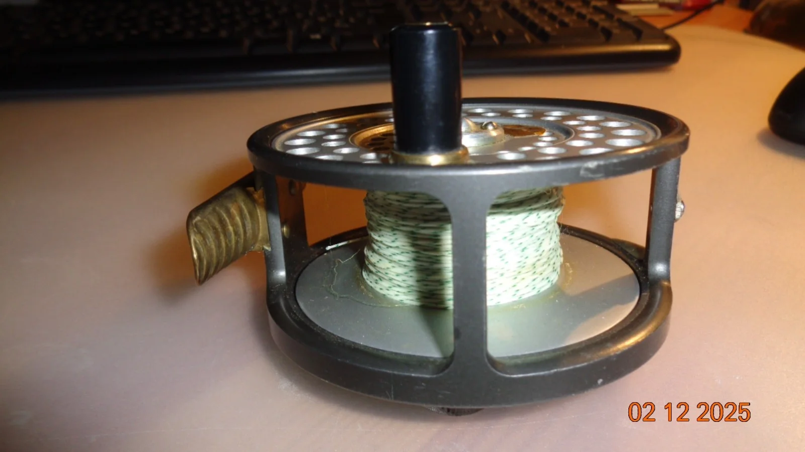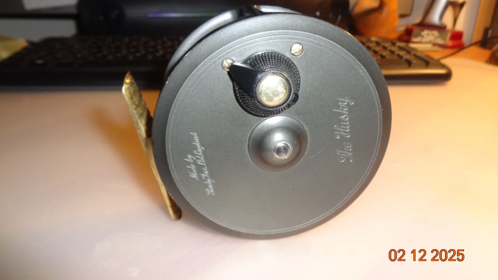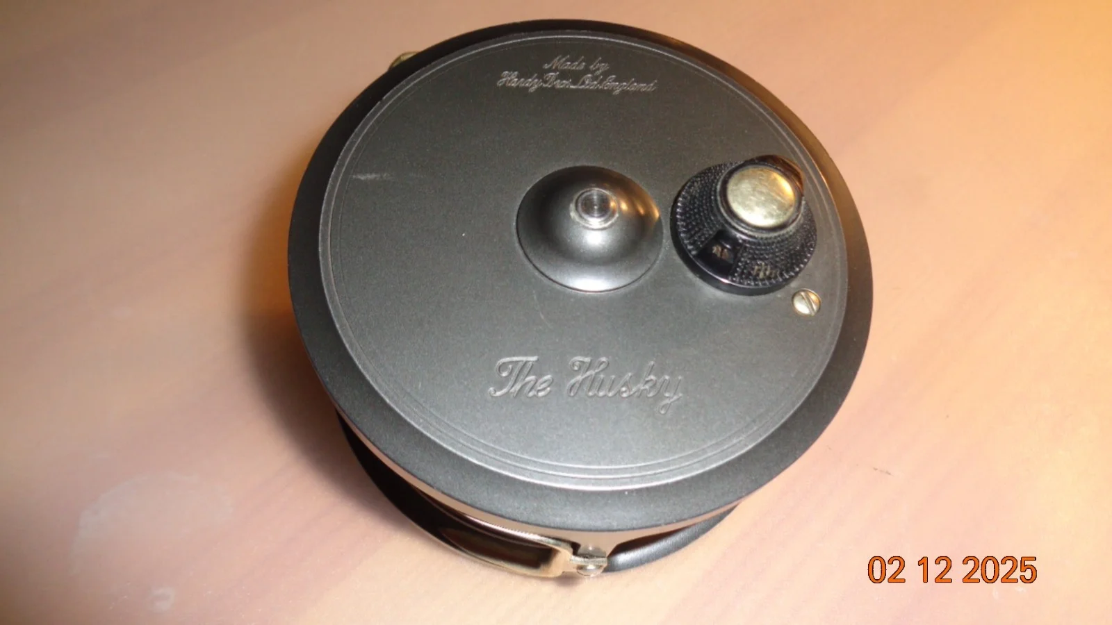 HARDY HUSKEY 3 3/8" SILENT CHECK WIDE RIMMED SEATROUT/SALMON ALLOY FLY REEL, WIDE SPOOL, RIBBED BRASS FOOT, BLACK HANDLE, QUICK RELEASE SPOOL, REVERSIBLE LINE GUIDE, REAR ADJUSTER IS IN OVERALL EXCELLENT ALMOST UNUSED CONDITION.