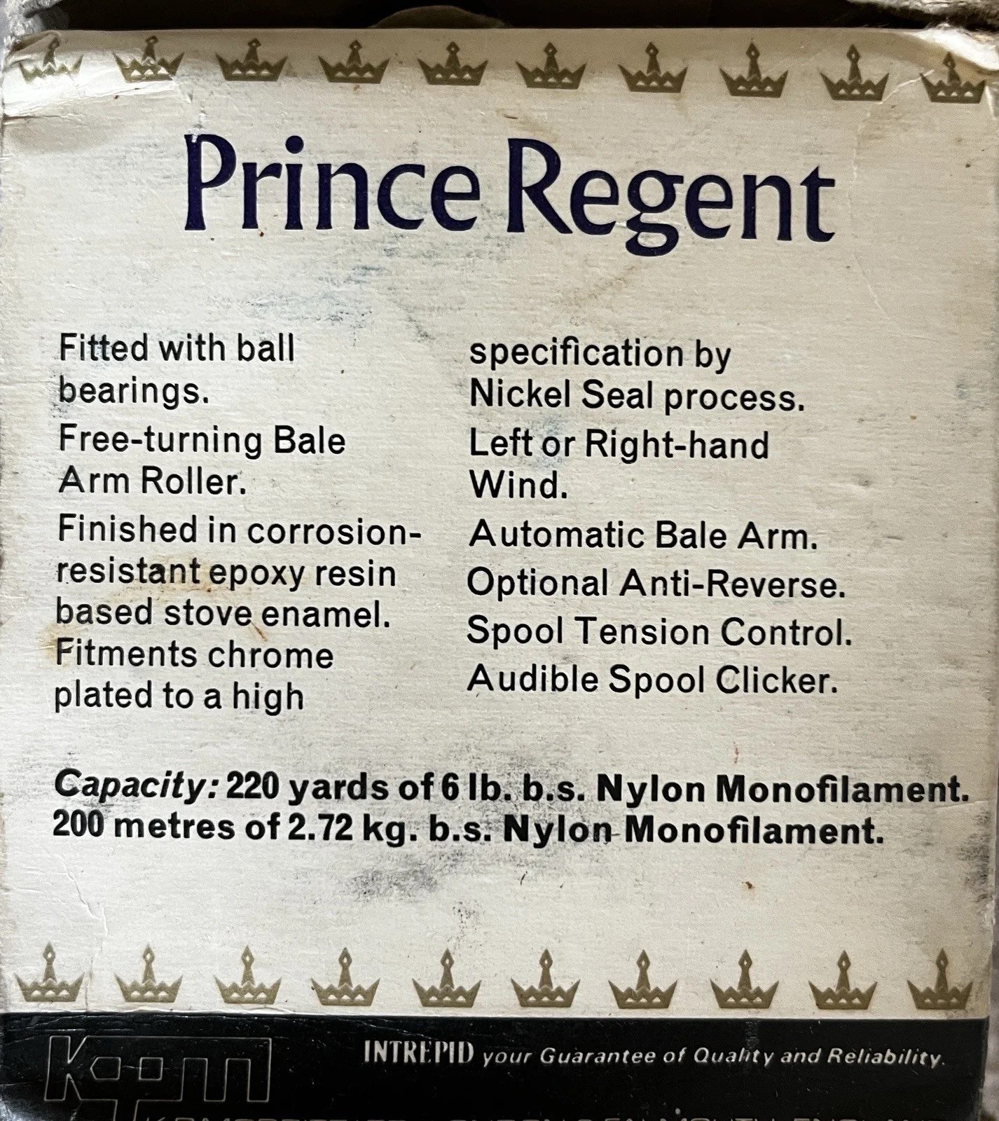 Vintage Intrepid Prince Regent reel in excellent condition. The reel comes in its original box, which is showing some signs of wear and tear (as shown on photo).