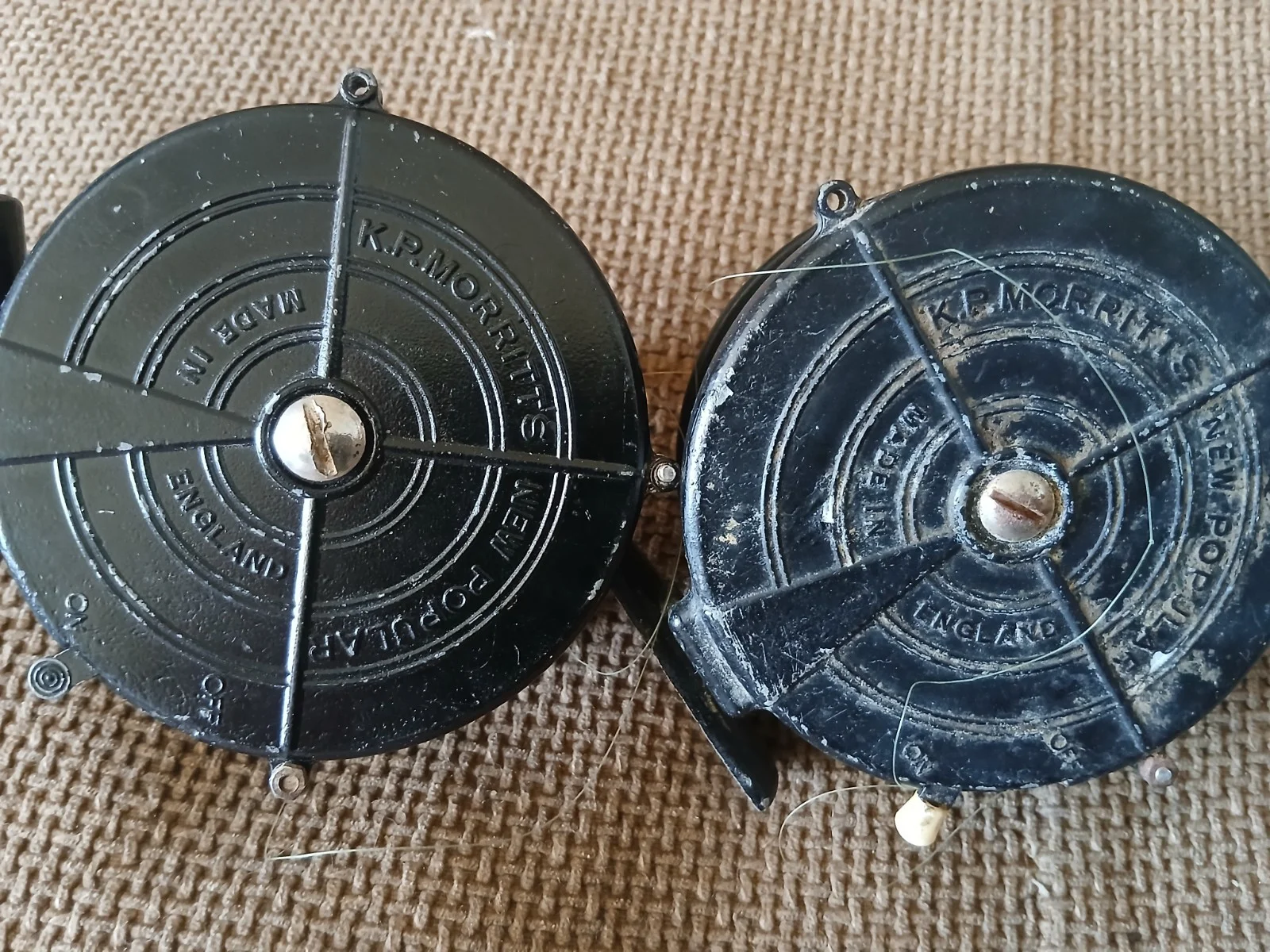 2 X Very old Fly fishing reels please study the pictures as these form part of my listing.K.P MORRITTS reelMade in the UK.Good quality they seem to work OK.Selling as collectors pieces.Uk post only packed very well for postingThank youhappy bidding