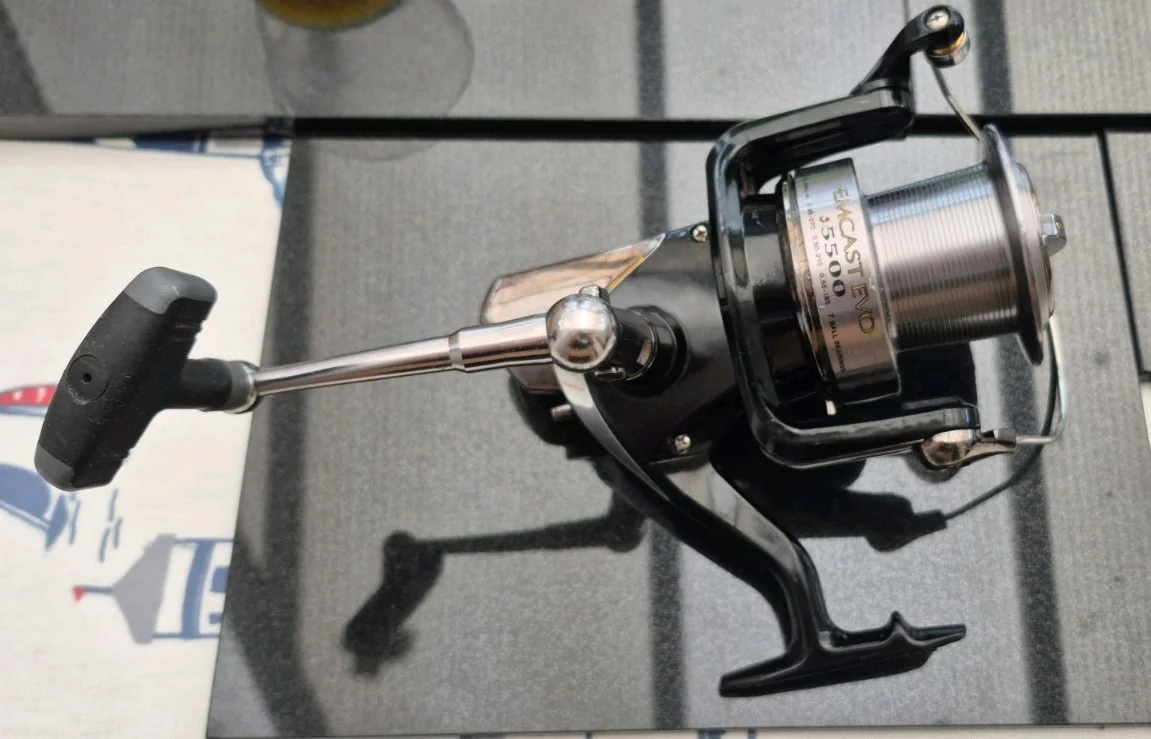 Reel is in good but used, some marks as expected with use but otherwise in great condition.The Daiwa Emcast Evo 5500 is a high-quality aluminium spinning reel designed for freshwater fishing, particularly for carp. With a gear ratio of 5.2:1 and front drag system, this reel offers smooth and reliable performance. The 5 ball bearings ensure smooth line recovery of 58 cm per turn, making it ideal for catching carp efficiently. Manufactured in Japan by Daiwa, this reel comes pre-spooled and is backed by a 1-year manufacturer warranty, making it a durable and trustworthy option for any angler.