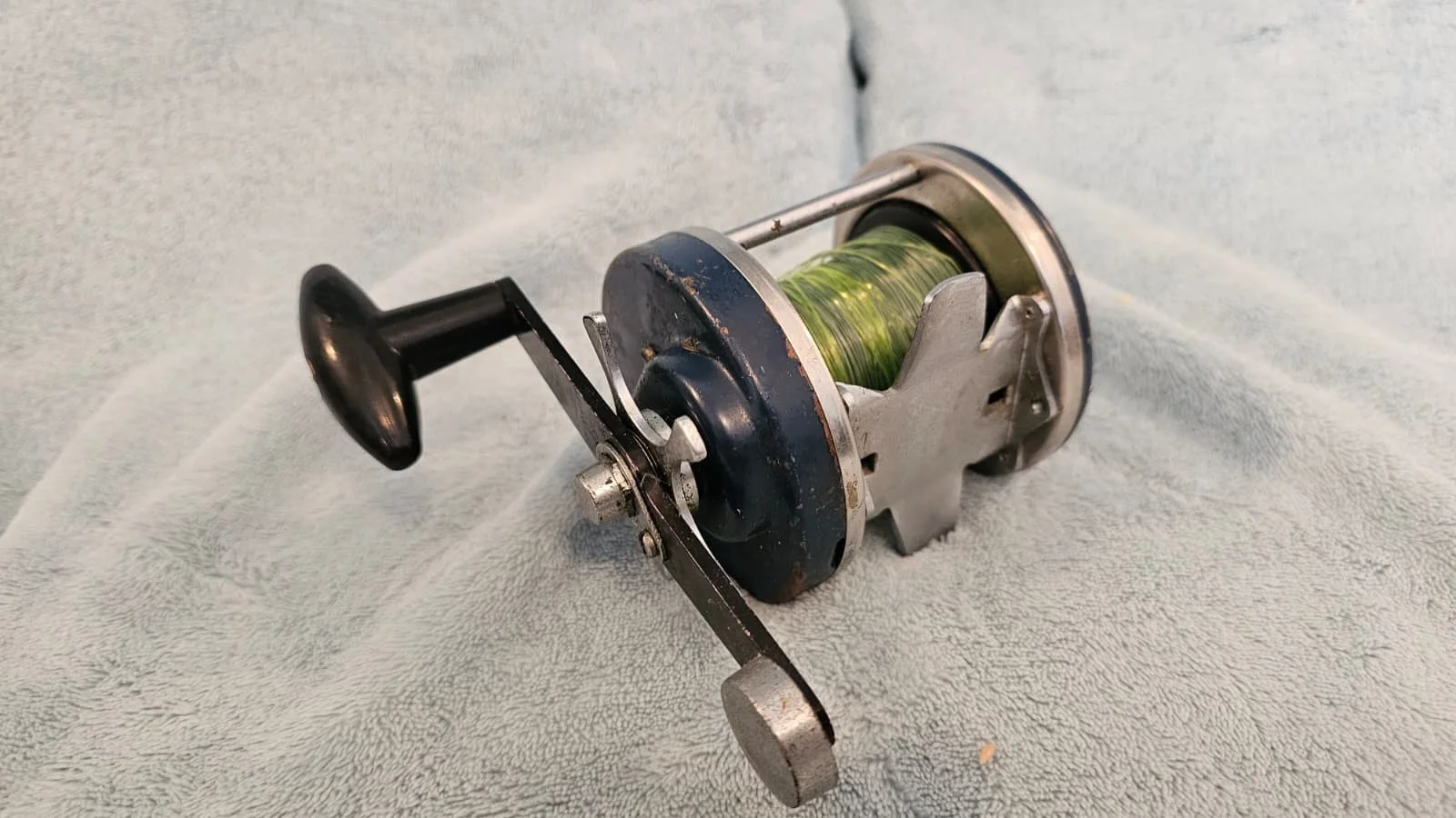 Classic Powerhouse: Vintage Abu Garcia Ambassadeur 8500 (Made in Sweden)Up for sale is the legendary Ambassadeur 8500. This is a true "made in Sweden" classic, built for high-capacity line and heavy-duty saltwater action. If you need a reel that can handle deep water and big fish, this is the one.Condition:Cosmetic: Used vintage condition with some "boat rash" (scuffs and minor pitting on the chrome and side plates) as shown in the photos. This gives it a great authentic look.Mechanical: Engages smoothly. (Note: As with all vintage reels, a quick oiling is recommended before hitting the water).Line: Currently spooled with high-visibility yellow line.Specifications:Model: 8500 (Blue finish)Build: Precision Swedish engineeringFeatures: Star drag system, stainless steel components, and a loud, crisp bait clicker.Ideal for: Boat fishing, heavy surf casting, or as a centrepiece for an Abu Garcia collection.