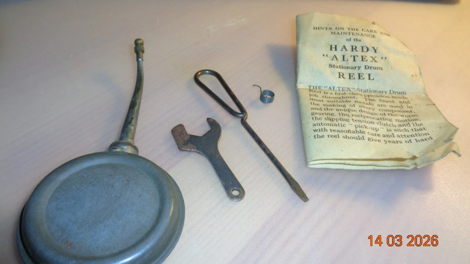 The Hardy Bros. Altex No.1 Mk. IV spinning reel is a vintage fishing reel made in the United Kingdom. This classic reel, along with a spare spool, is perfect for fishing enthusiasts looking for a durable and high-quality piece of equipment. The Hardy brand is known for its craftsmanship and reliability, making this vintage reel a valuable addition to any angler's collection.