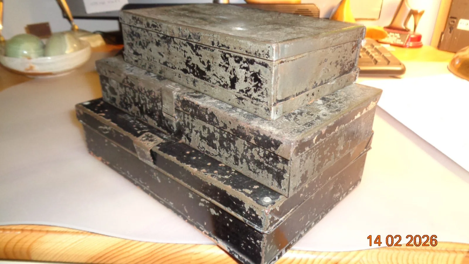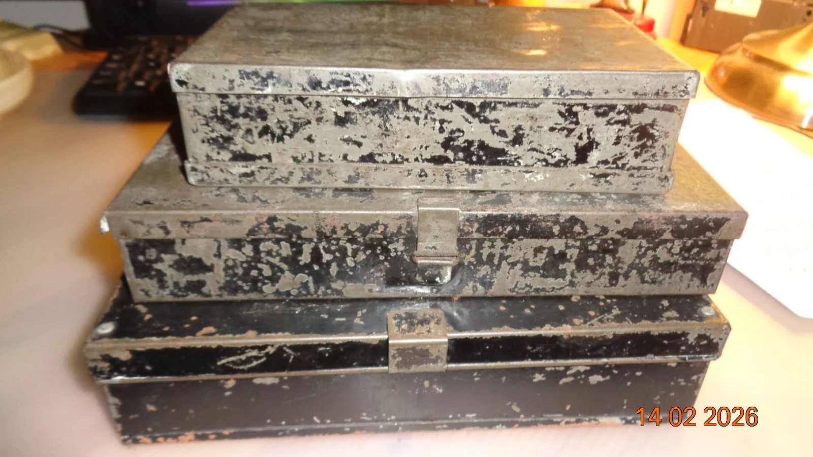 3 VINTAGE BLACK JAPANNED FLY/LURE BOXES C/W CONTENTS