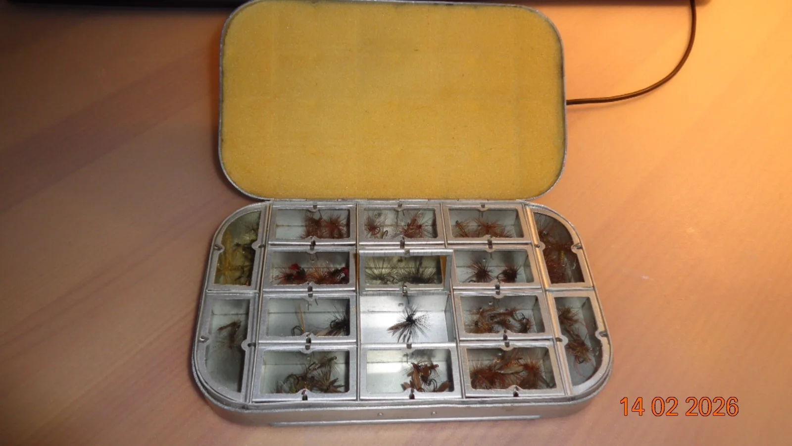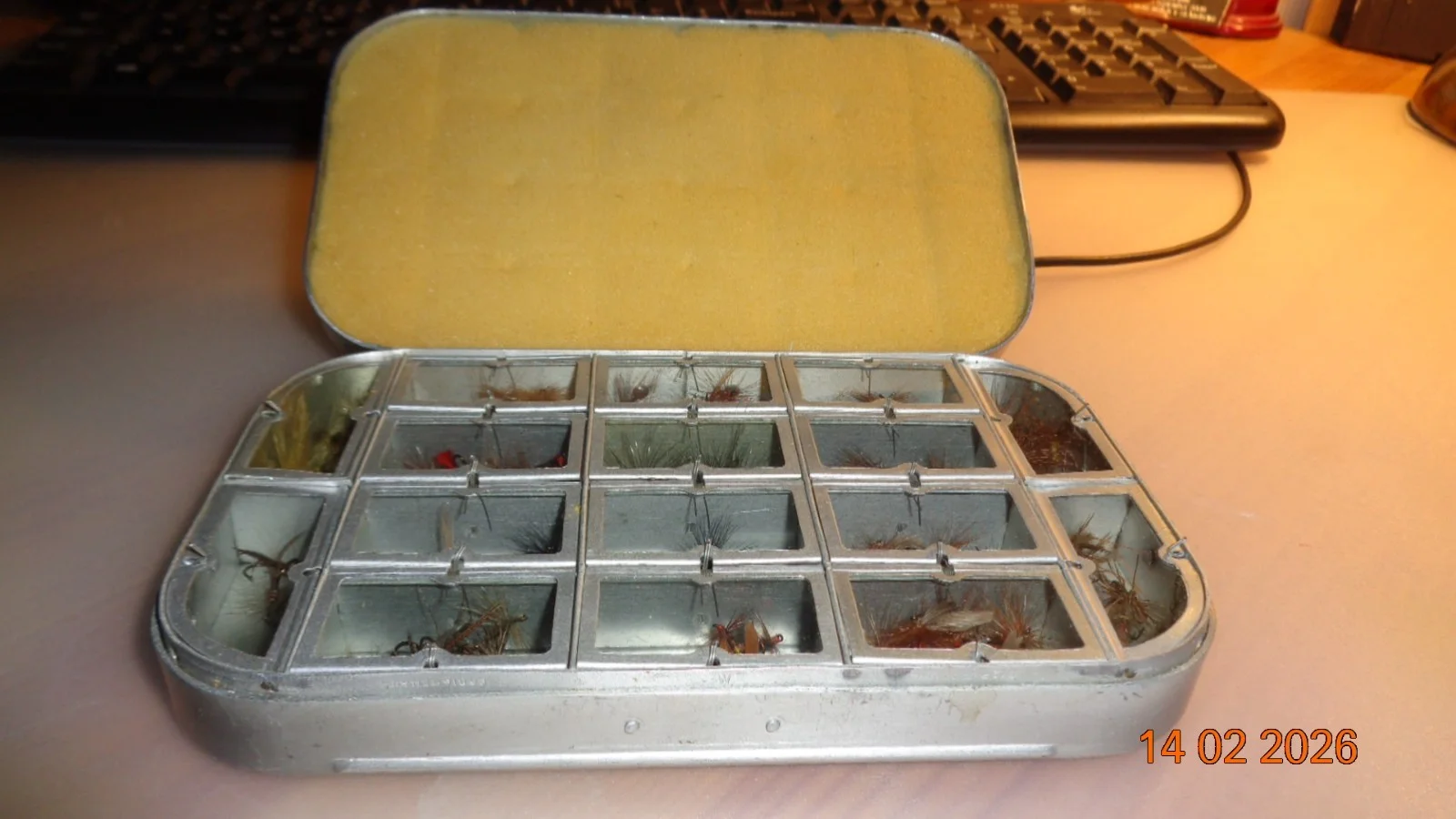 The Wheatley Simalloy Dry Fly 16 Compartment Box with Contents is a vintage fishing accessory from the United Kingdom, perfect for fly fishing enthusiasts. This box is specifically designed for storing and organizing dry flies, with compartments for each fly to prevent damage and tangles. The contents include a selection of high-quality trout flies, ideal for anglers looking to enhance their fishing experience with traditional techniques. This vintage piece is a must-have for any fishing enthusiast looking to add some authentic British charm to their collection.