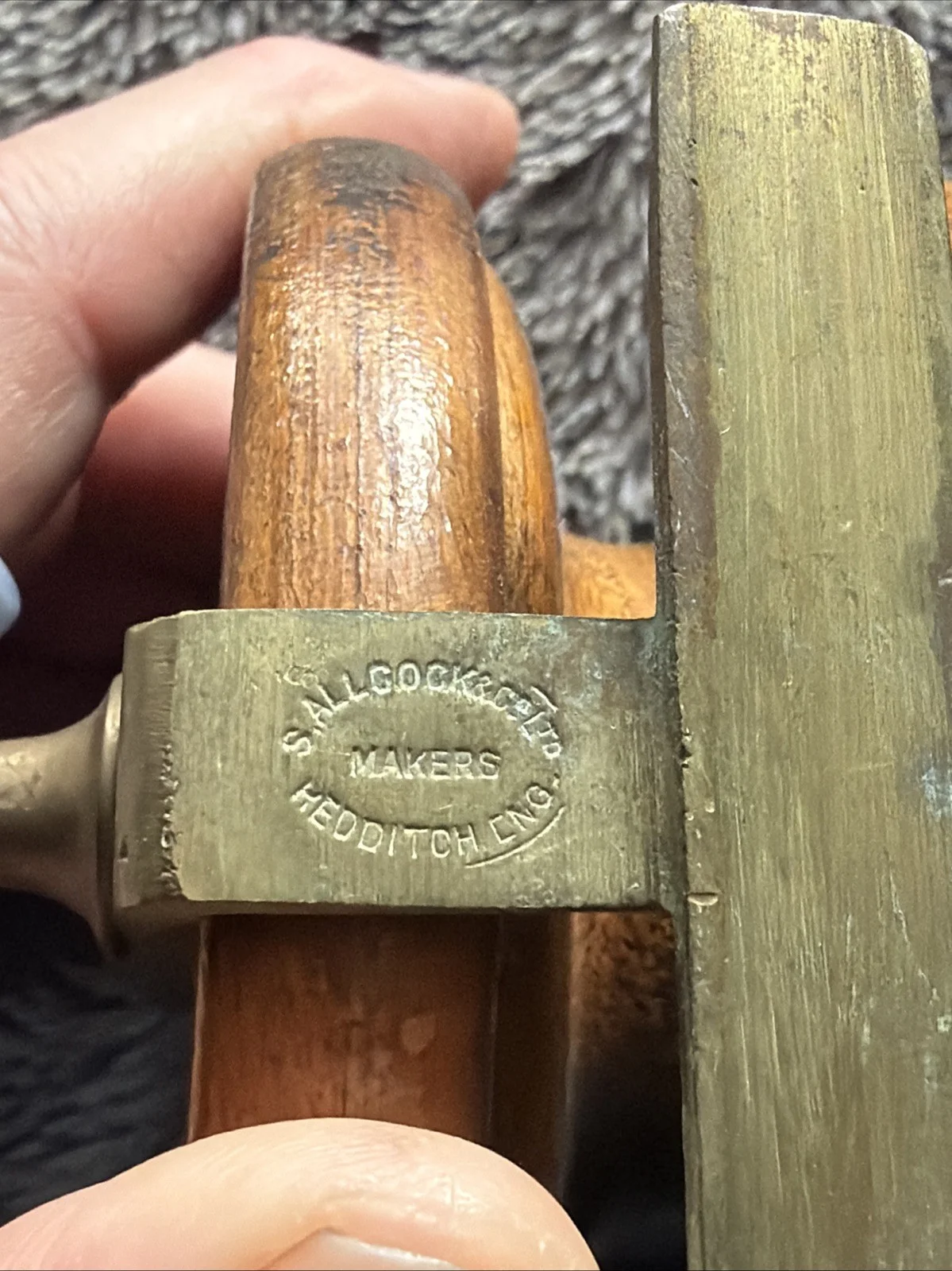 Vintage wooden and brass fishing reelSlider to look or free wheel to enable ratchet workingFair conditionManufactured by S. Allcock co redditch