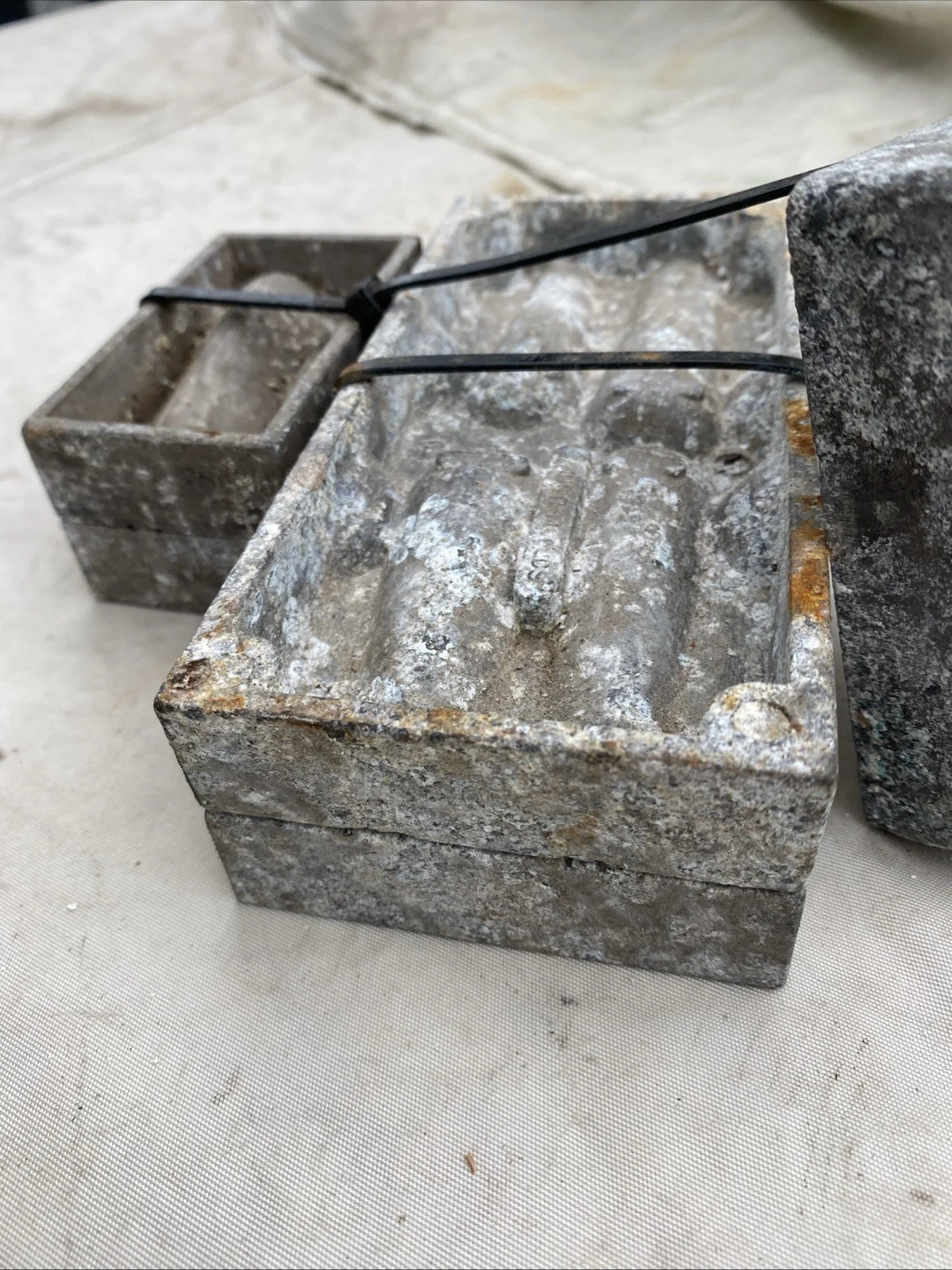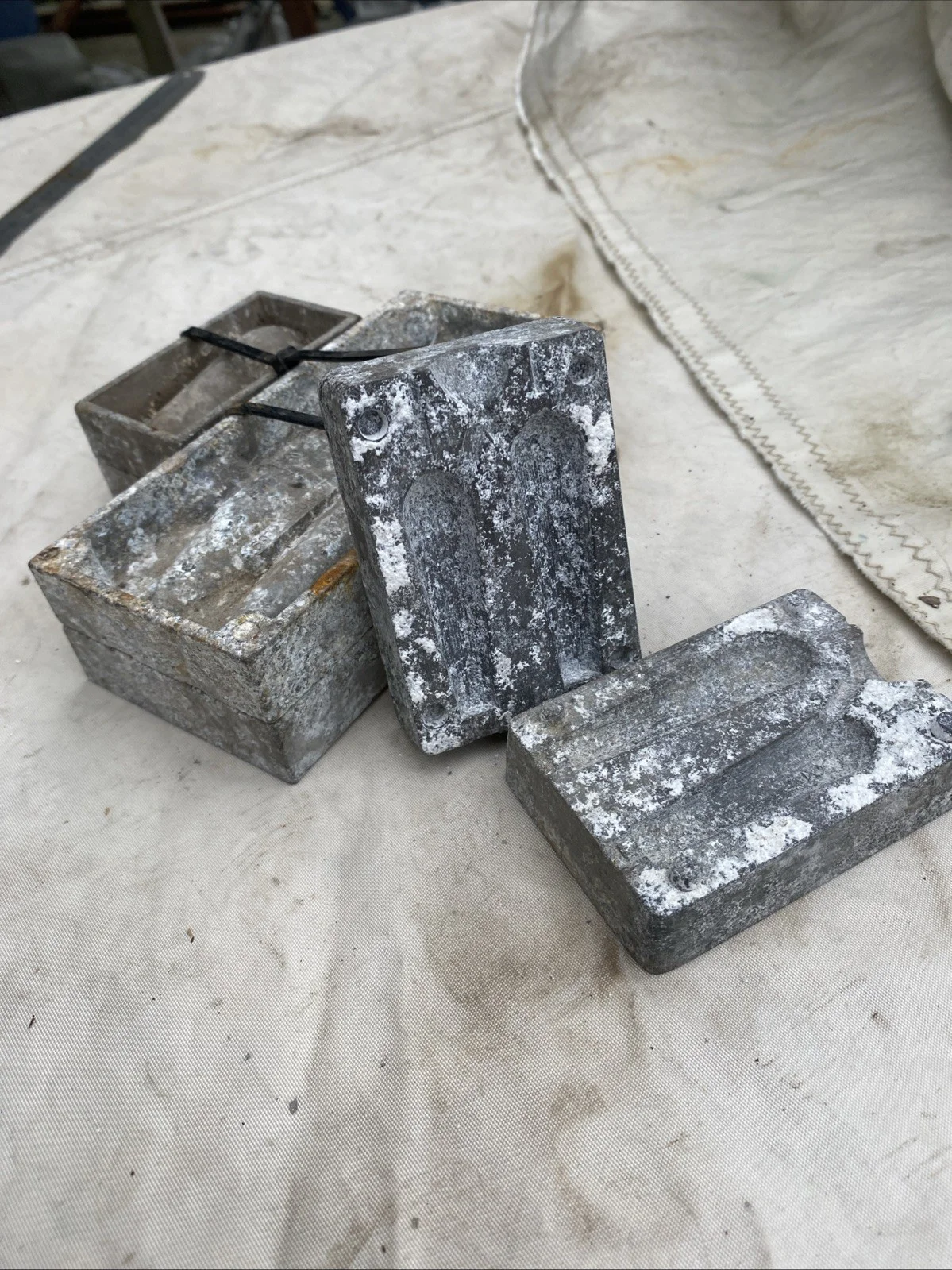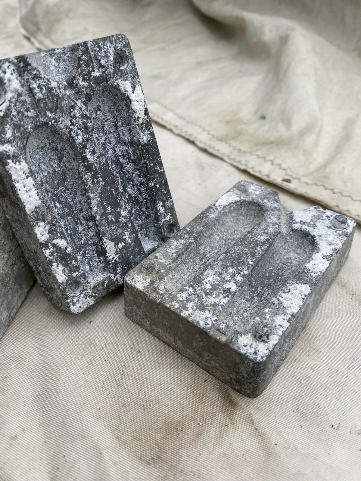 vintage metal molds, used for casting small lead fishing sinkers,