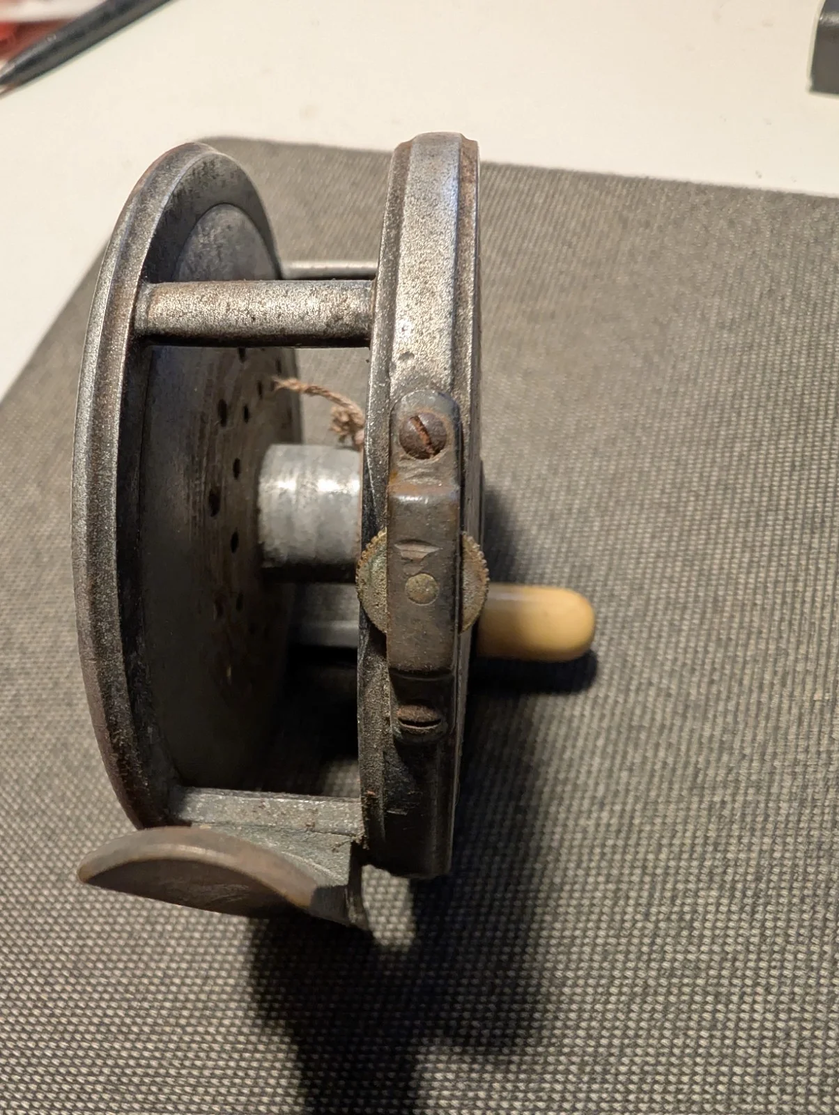 Early according to the style of brand mark. 1896-1905.3 1/8 inch reel, has a full length brass foot. the tensioner seems to work as does the gear teeth, there is no play in the reel, but does seem to have a bit of stiffness at certain points on each turn. I have not opened it up to check, but there is no rattling, as if something has broken. it has sat unused for probably 50 years or more so probably just needs a clean and a service.I'm no expert, but I'll try my best to answer any questions. by all accounts it's a fairly rare and good one, offered with no reserve.check my other listing for a Hardy Silex no2 4 inch reel.