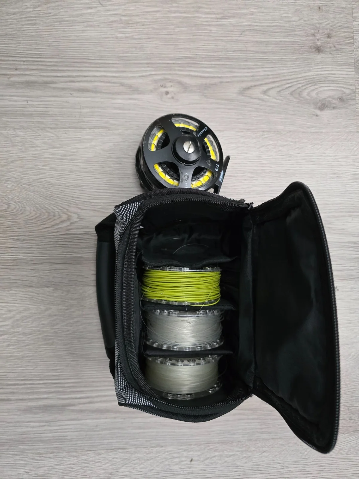 The product is a set of two Airflo Classic fly reels, each accompanied by 3 spare spools. These reels are designed specifically for freshwater fishing, with a gear ratio of 1.0:1 and constructed from lightweight aluminium material. these reels feature a durable construction with two ball bearings, making them ideal for targeting rainbow trout. With a hand retrieve suitable for both left and right-handed anglers, the Airflo Classic fly reels offer a high-quality and versatile option for fly fishing enthusiasts.The reels come with 8 Lines pre spooled on the Cassettes and 2 x Finner Lines still in the packaging.The lines cover all depths from Floating, Buzzer, Slow Intermediatte, Fast Intermediatte Di3,Di4 to DI6 rating. One reel is in new condition and 1 has scrapes on the coating both reels work perfectly.