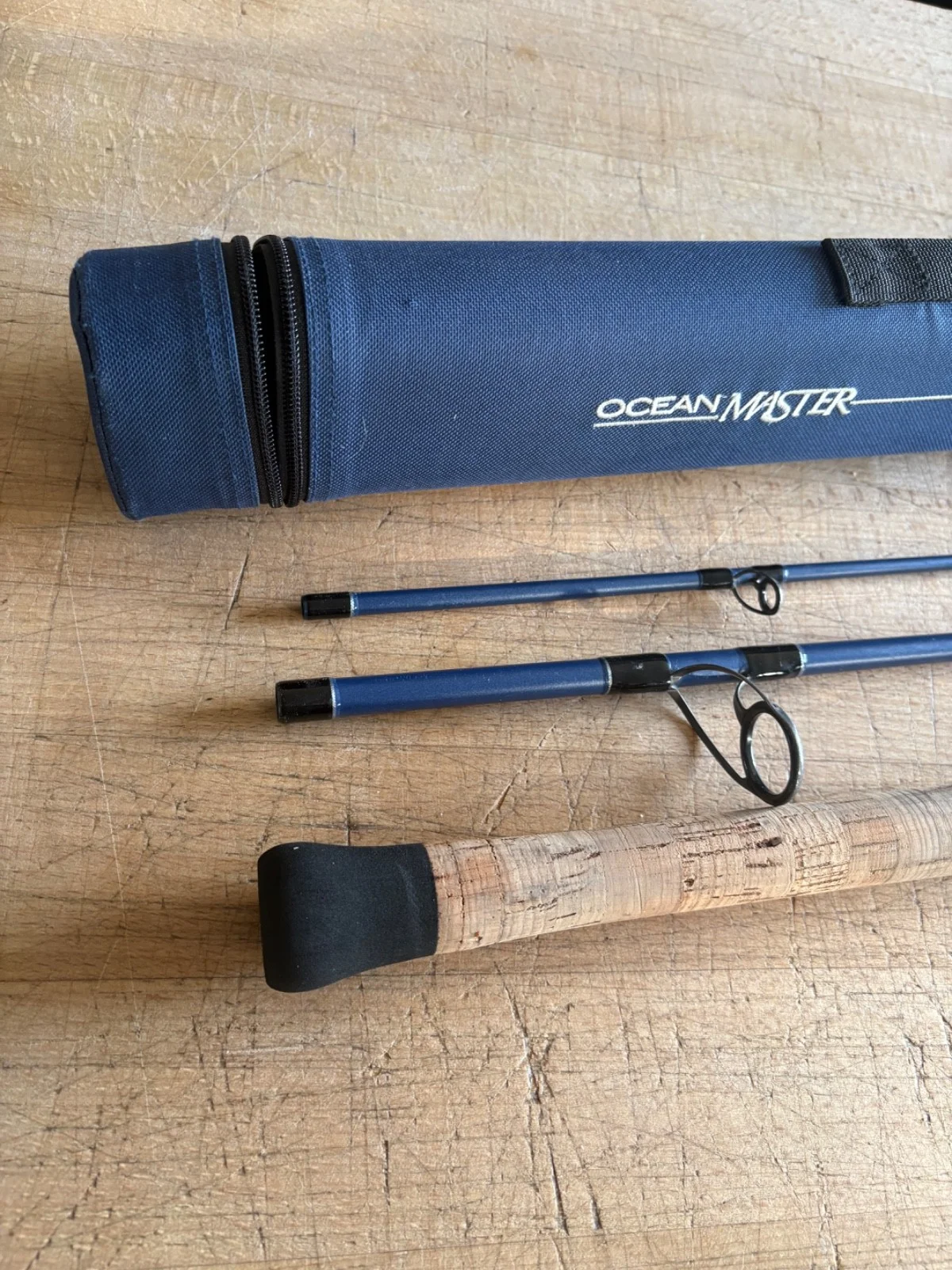 Great used but very good condition Oceanmaster fishing rodOTR71220MHS 7’ 0”5/8 - 2 1/4oz lures. 12-20lb line. Medium Heavy power. E24.Blue With triangular case A few very minor signs of use. As pic