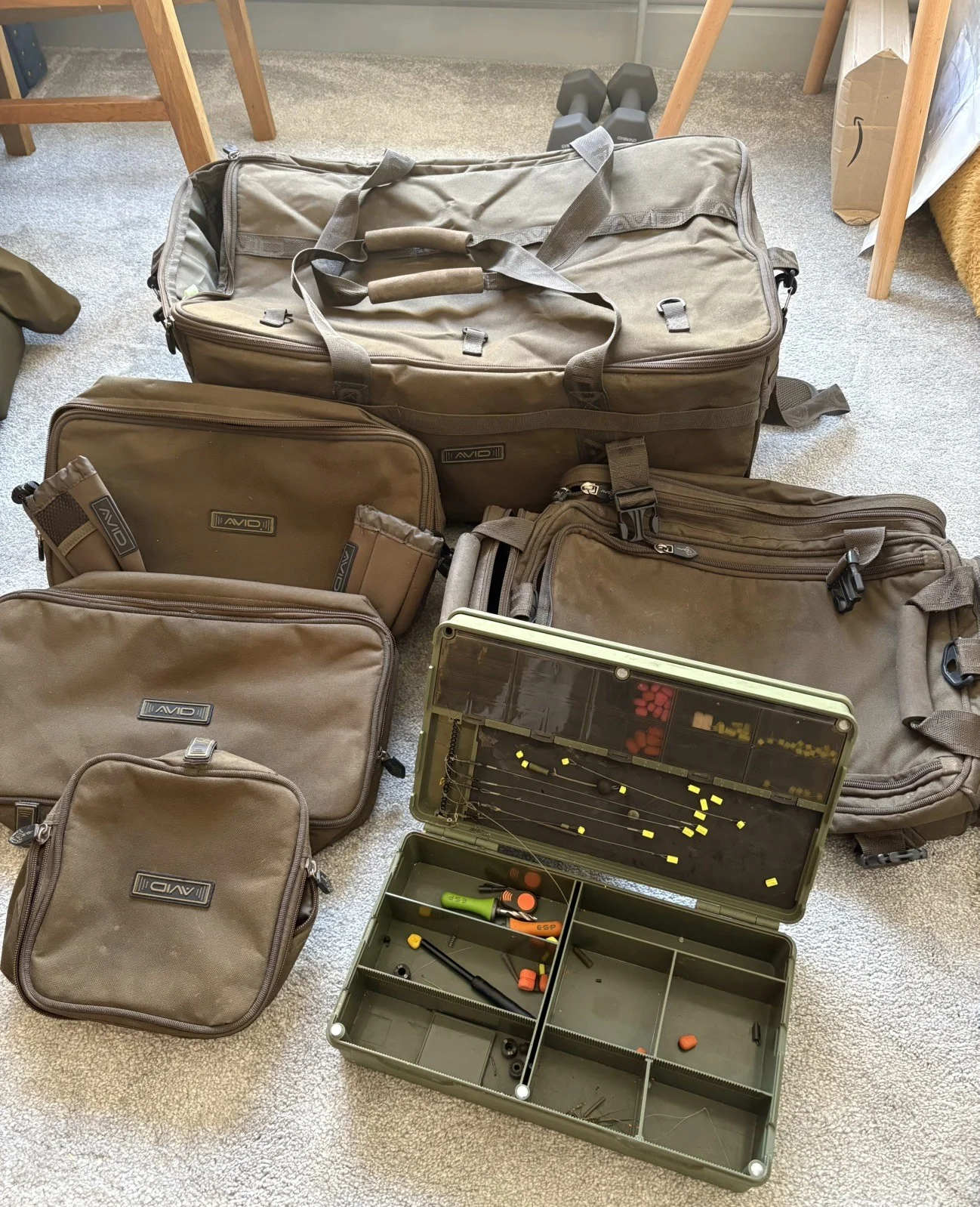 Avid fishing luggage set with ridge monkey tack box & few extras . Good used condition. Collection only
