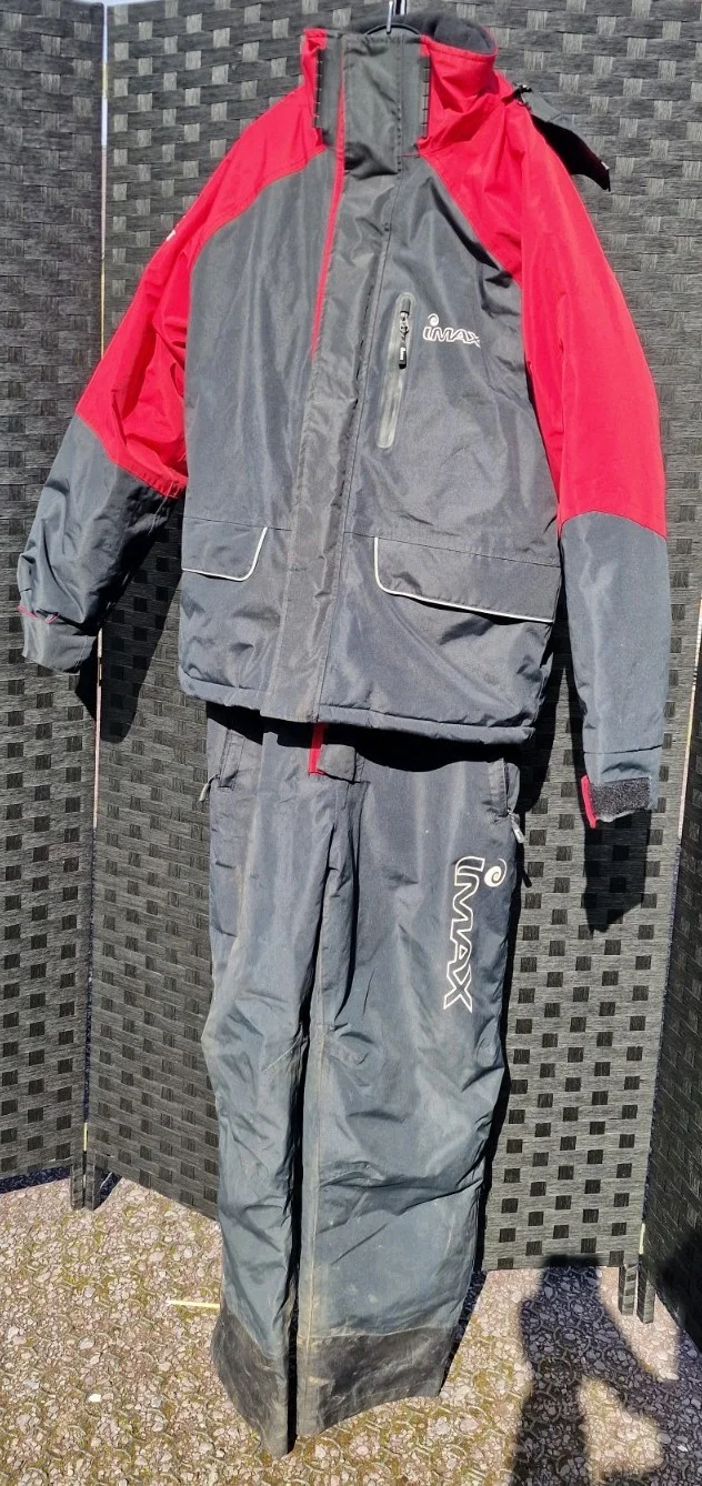 Imax Thermo Fishing Suit in a great used condition.Sallopettes used half a dozen ish times, jacket used twice.Nice an warm grab a bargain.Sallopettes have a little mud on them.see pics for condition