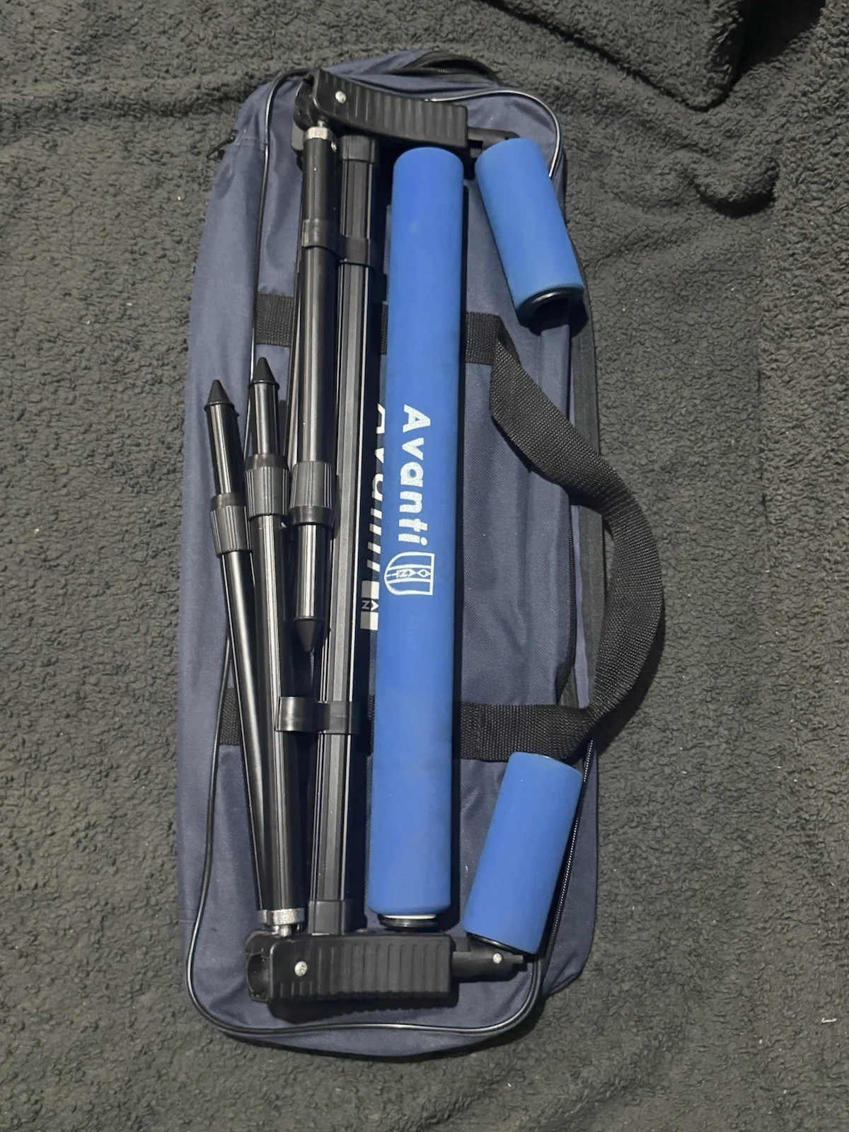 Avanti competition single pole roller, used a few times, telescopic legs to adjust height, perfect for match pole competitions, comes with carry bag