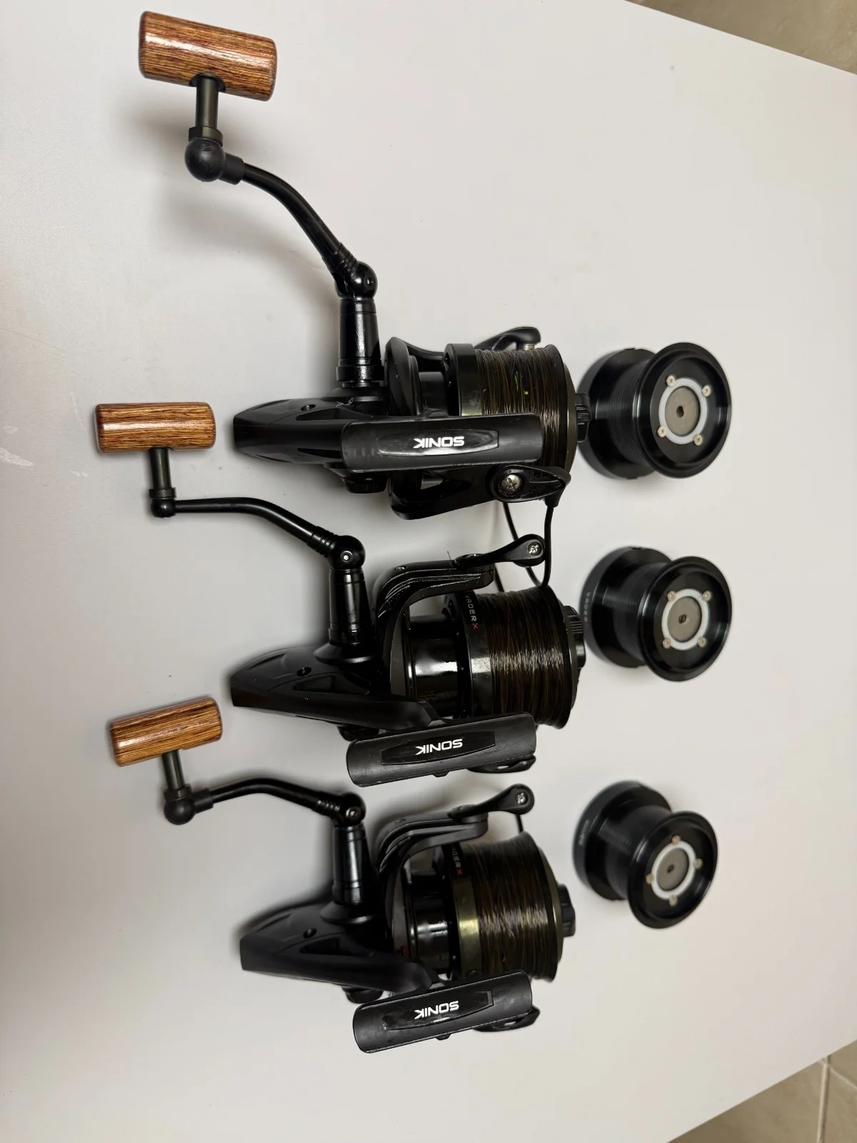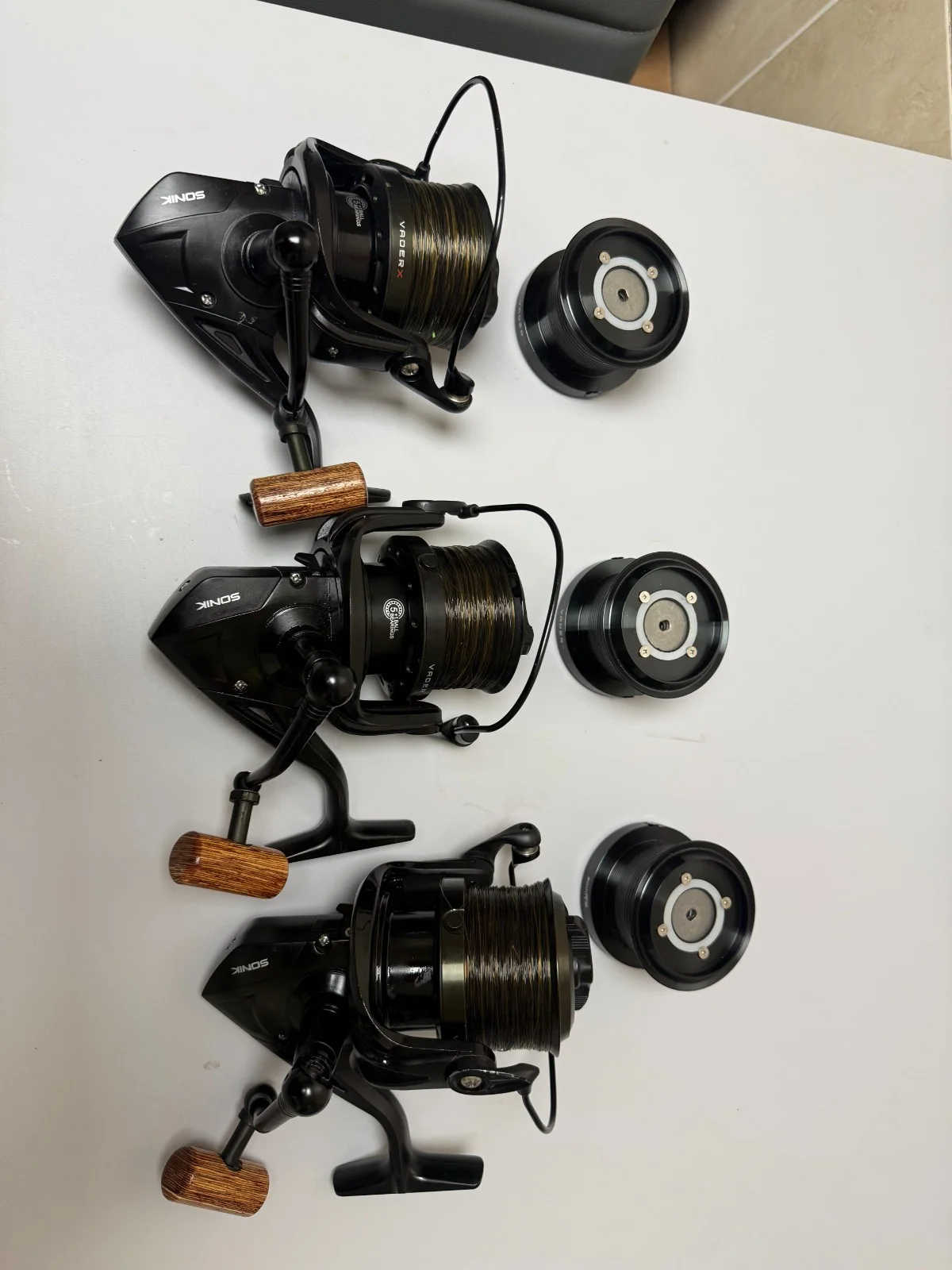 Sonik Vader X 8000RS Carp Reels X3Great used condition, all nice a smooth, only used on a hand full of sessions. Comes complete with 3 spare spools, which have never been used Happy bidding
