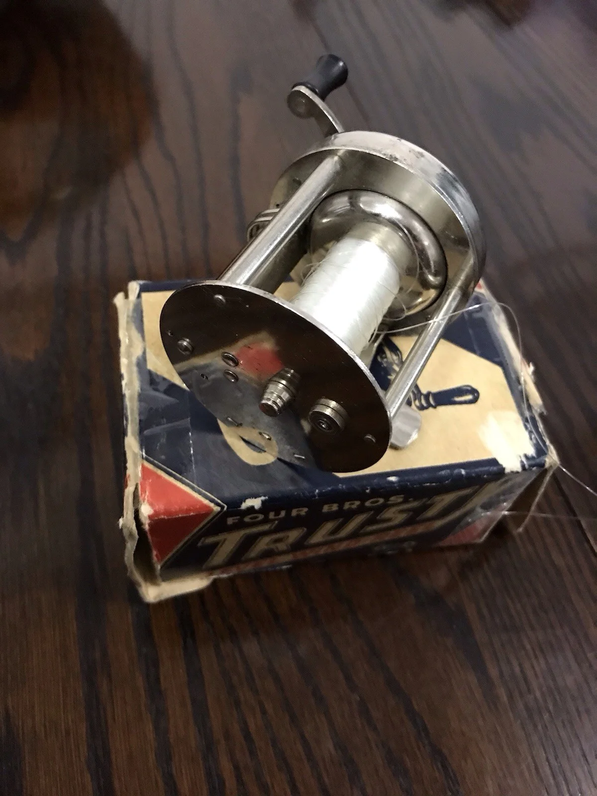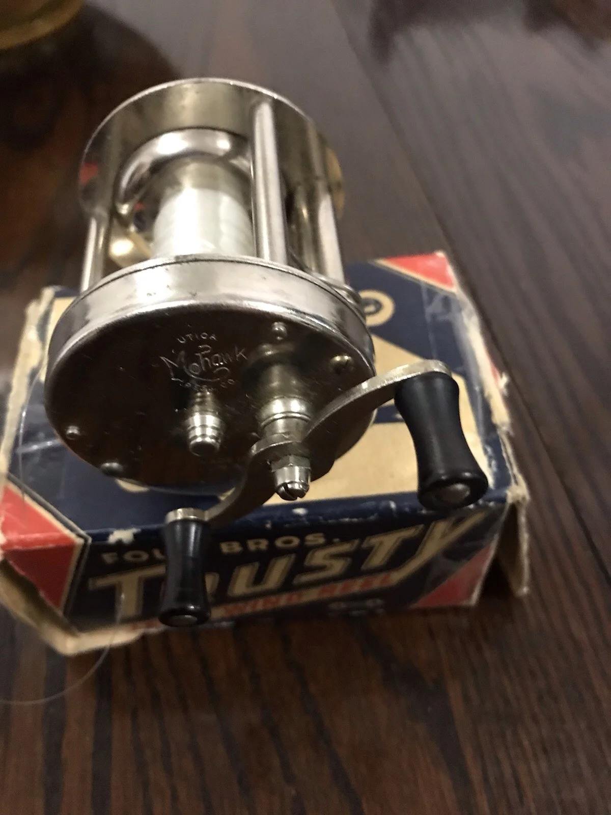 American Mohawk Level wind sports reel, No 1793, polished Nickel , great condition,Four Brothers , Trusty.