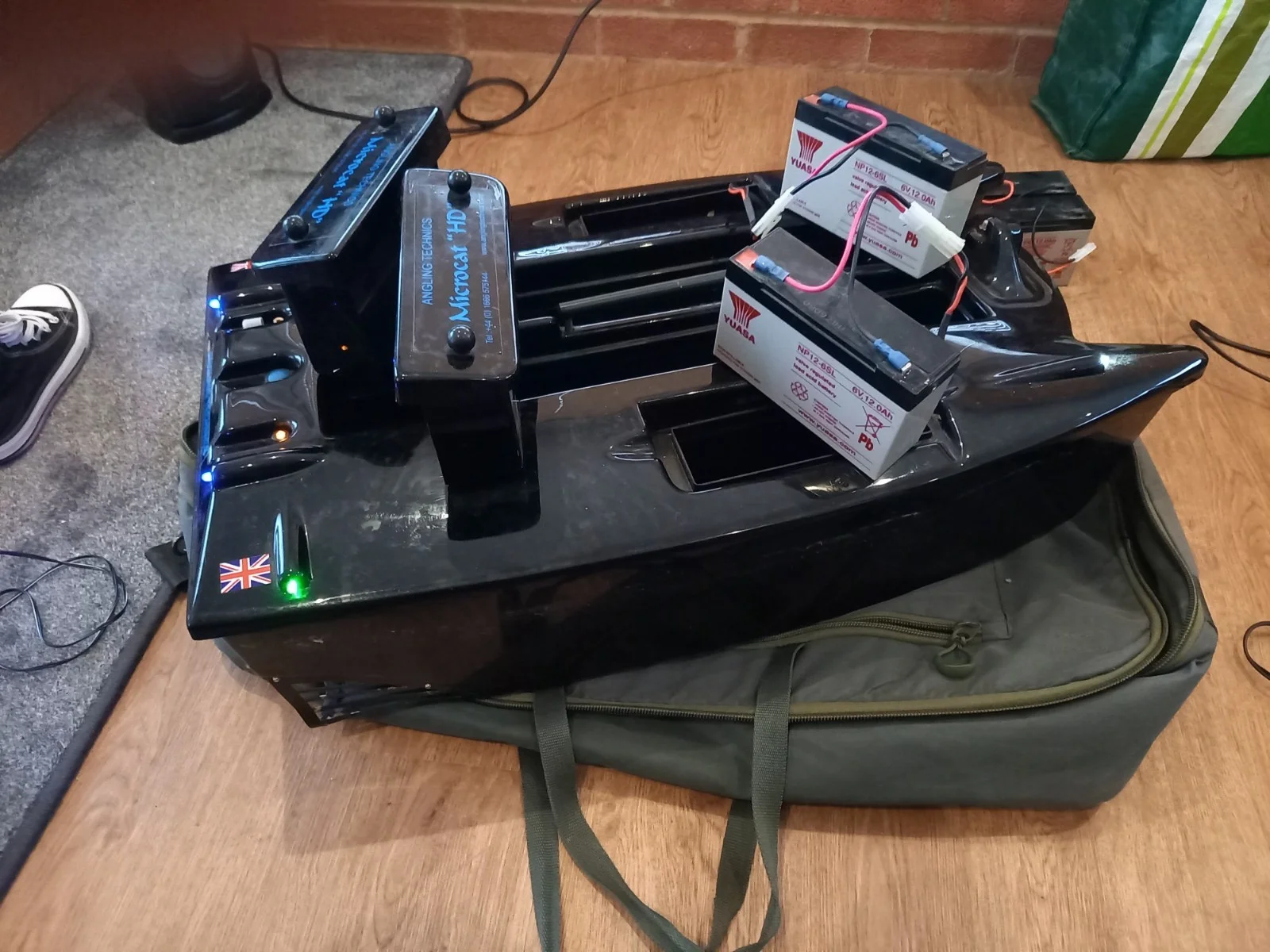 Microcat Mk3 H,D bait boat , comes with angling techniques carry bag , 2x sets of battery's .battery charger will charge battery,s in boat also charging lead to enable battery/s to be charged separately ,solar panel and graphic echo sounder with charger and case. no issues with boat all works as it should , comes with instructions