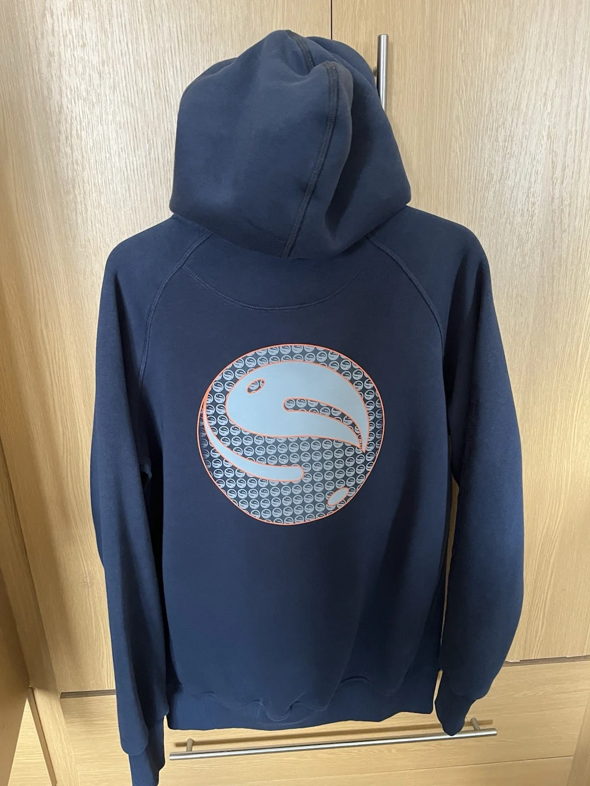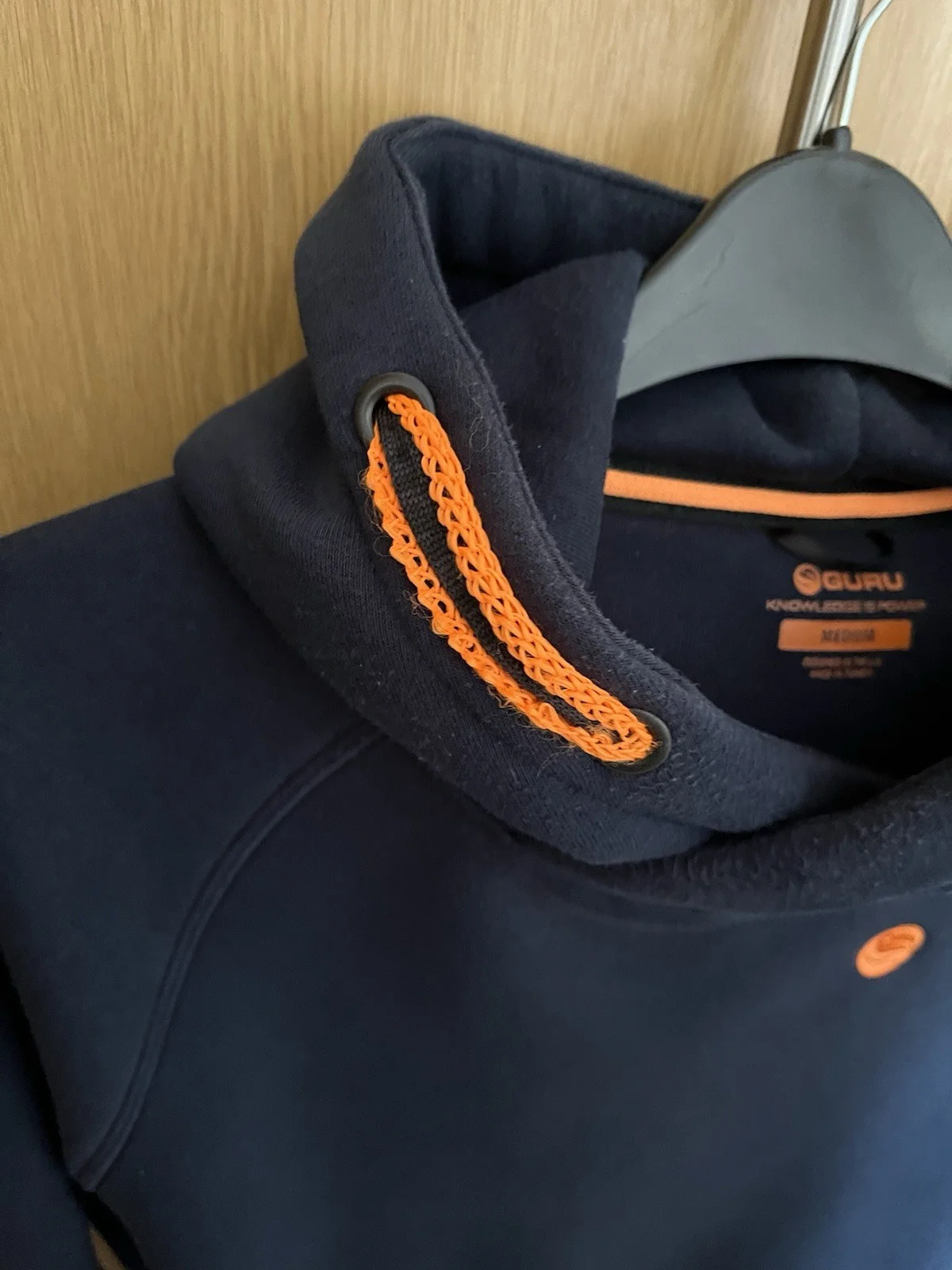 Guru hoodie colour navy with orange detail. Cors split in the hood (see photos)
