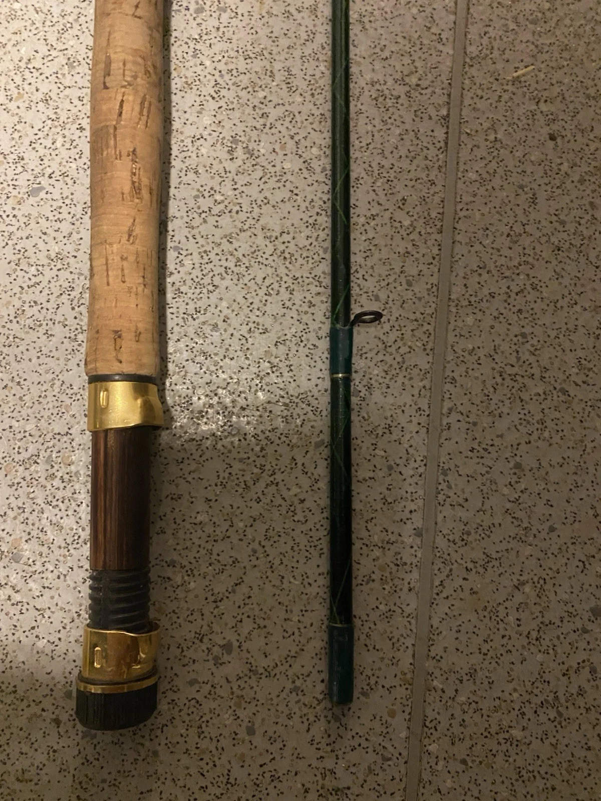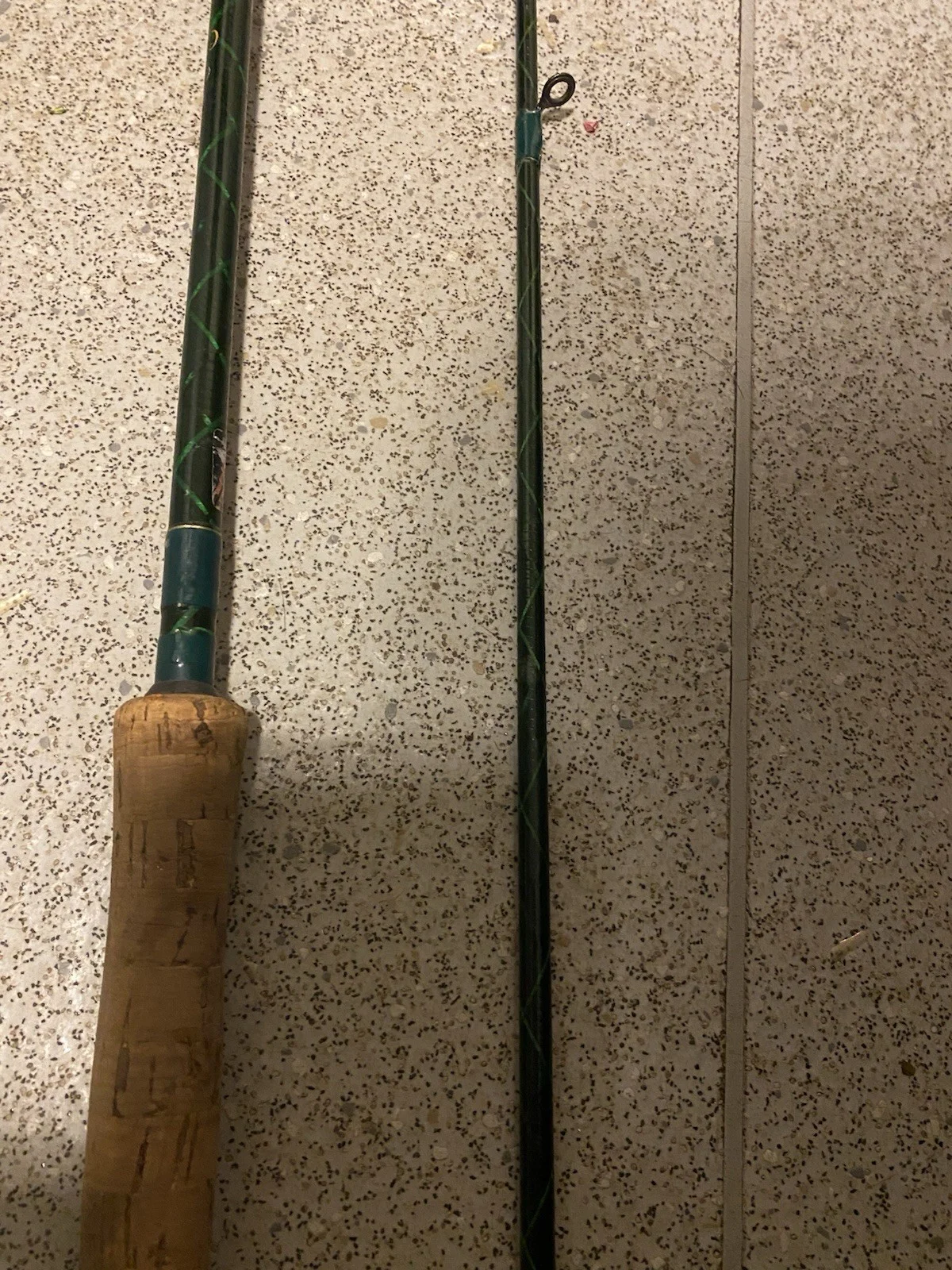 The Bob Church Fly Fishing Rod X Weave Lure Fisher is a high-quality fly fishing rod designed specifically for freshwater fishing. With a carbon fibre material and a cork handle, this rod provides both strength and comfort for anglers. The two-piece design makes it convenient for travel, while the medium power is ideal for catching trout. At 10 ft 6 inches in length, this rod is perfect for those looking for a versatile and reliable option for their fishing adventures. Rod in good condition, no eyes missing No bag