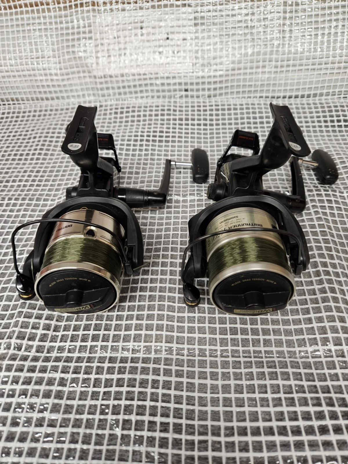 Shimano 4500b seaspins x2 in vgc for vintage baitrunner reels lengendary click clutch bullet proof reel reluctant sale.