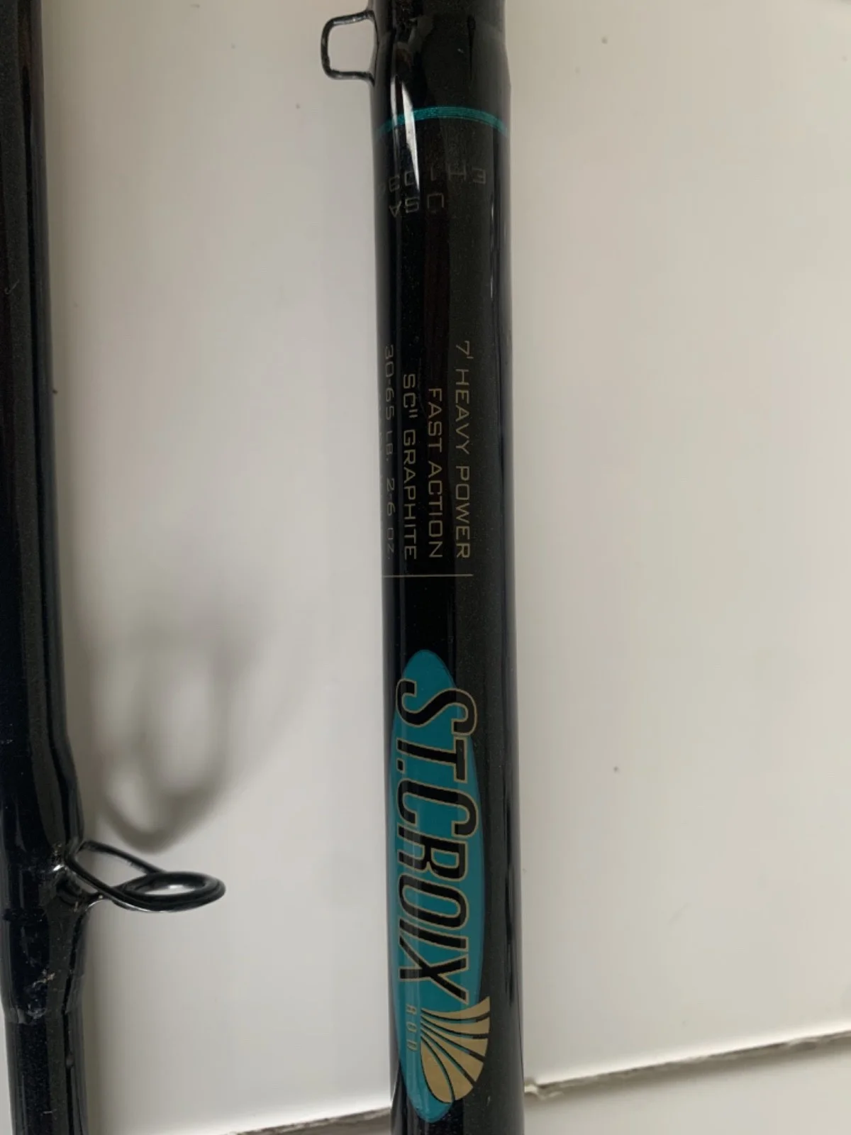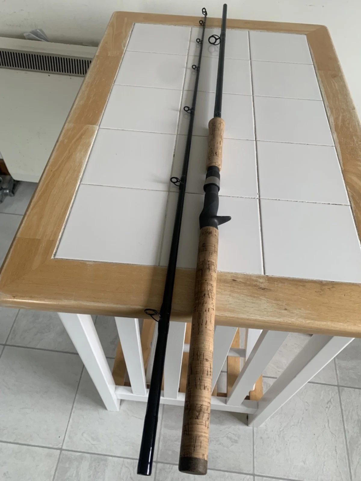Heavy lure jerk bait rod in great condition. Not seen much use. Purchased new this was considered the best available for casting and working heavy lures for Pike and Muskie.Made in the USA.2 piece for easier travel.2 - 6oz30 to 65LB line class