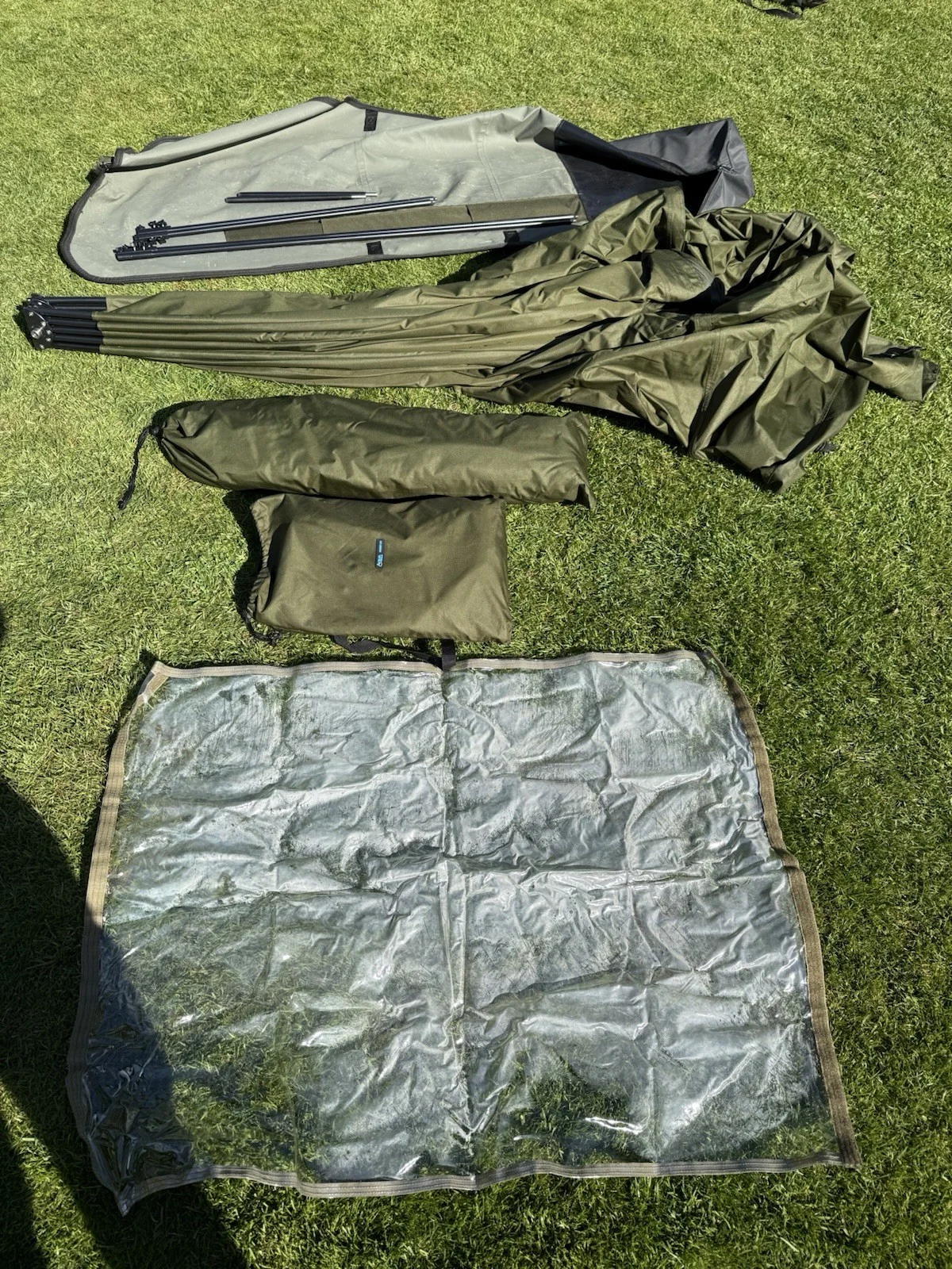 Aqua Pioneer 150 Bivvy Aquatexx EV 1.0 in good condition and well looked after. I have dried it and cleaned it after every use and has been stored in the house when not being used so not left in a cold shed or garage. As you can see from the pictures it is well presented and clean with no damage. Collection only. I am also selling the Aqua 150 Bivvy skull cap in camo under a separate listing.