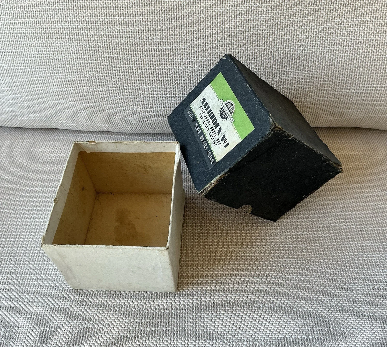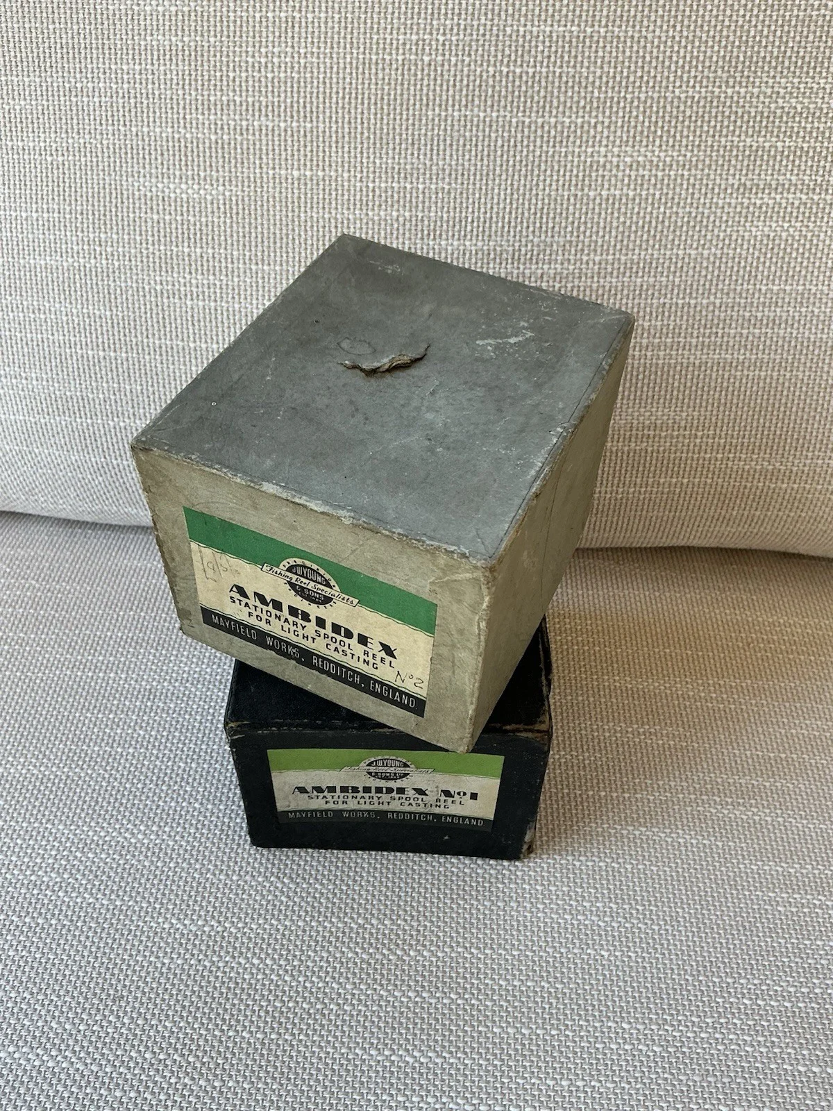 Two early Ambidex reel boxes by J W Young & Son Overall in nice condition , please check photos as they form part of the description .
