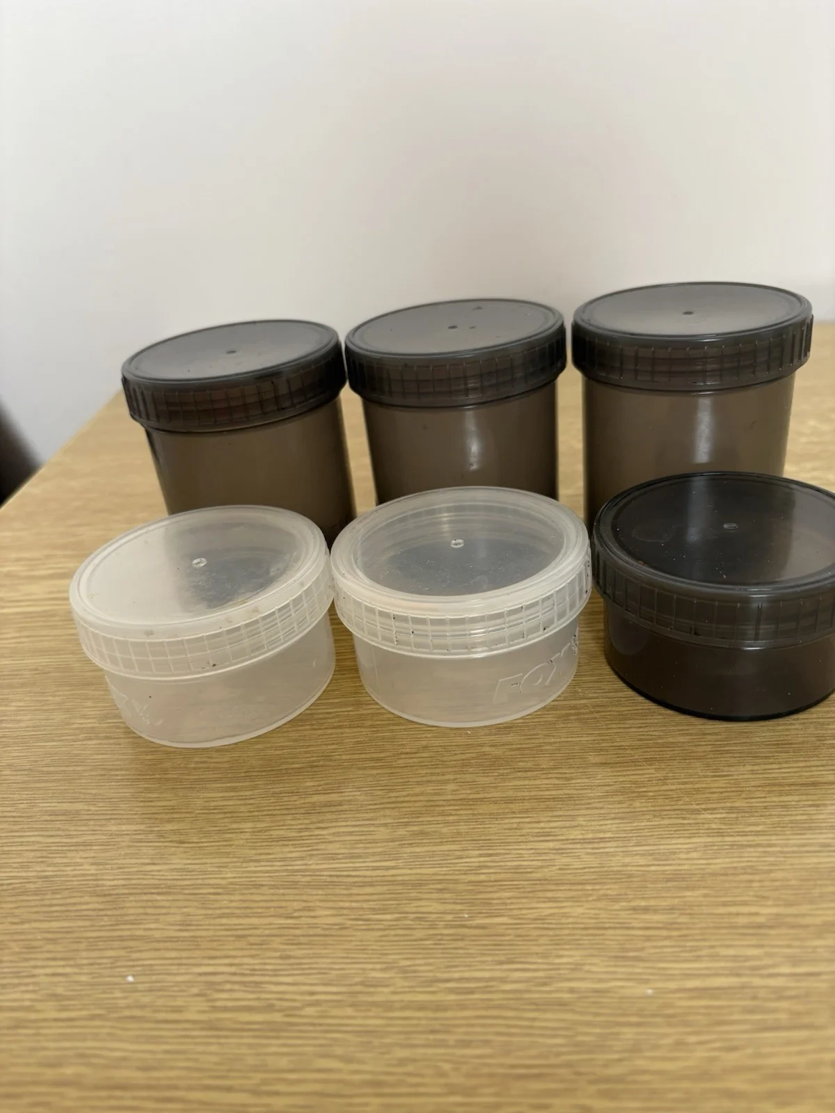 fox bait bucket x2 5 litre boilie bait storage with lids used