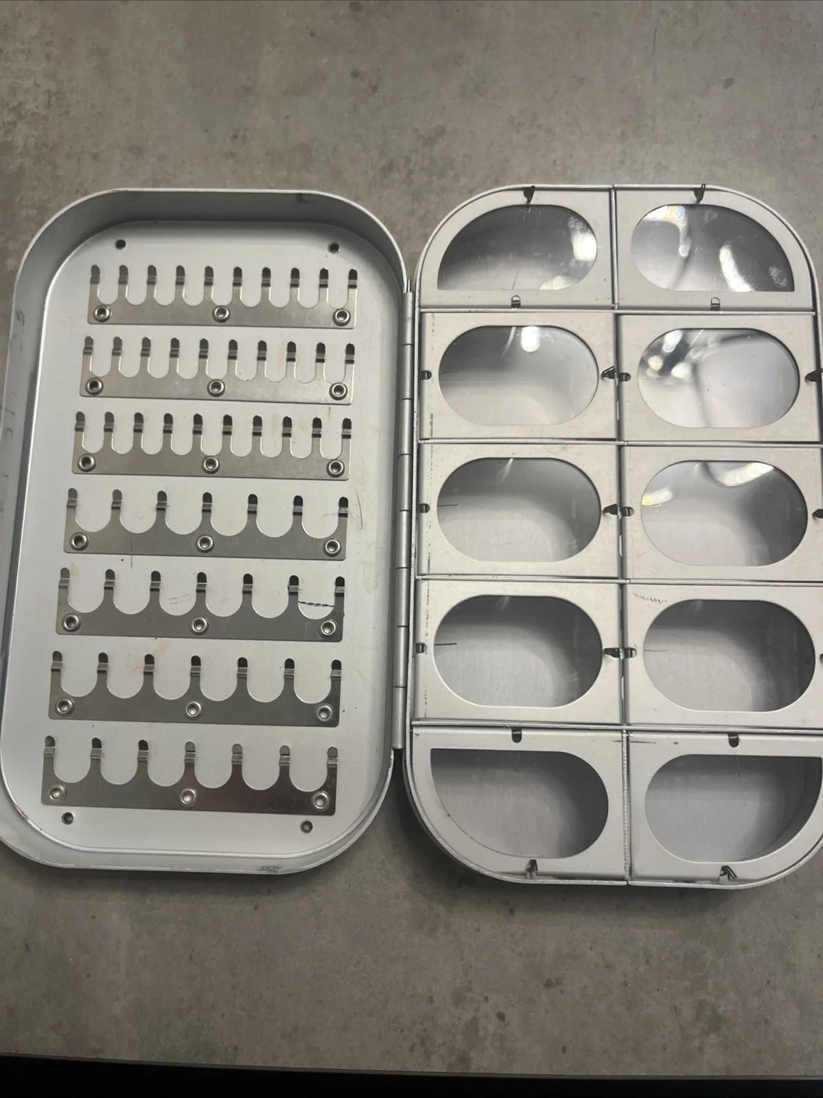 Okuma Silver Window & Foam Fly Box With 12 Flies, VGC