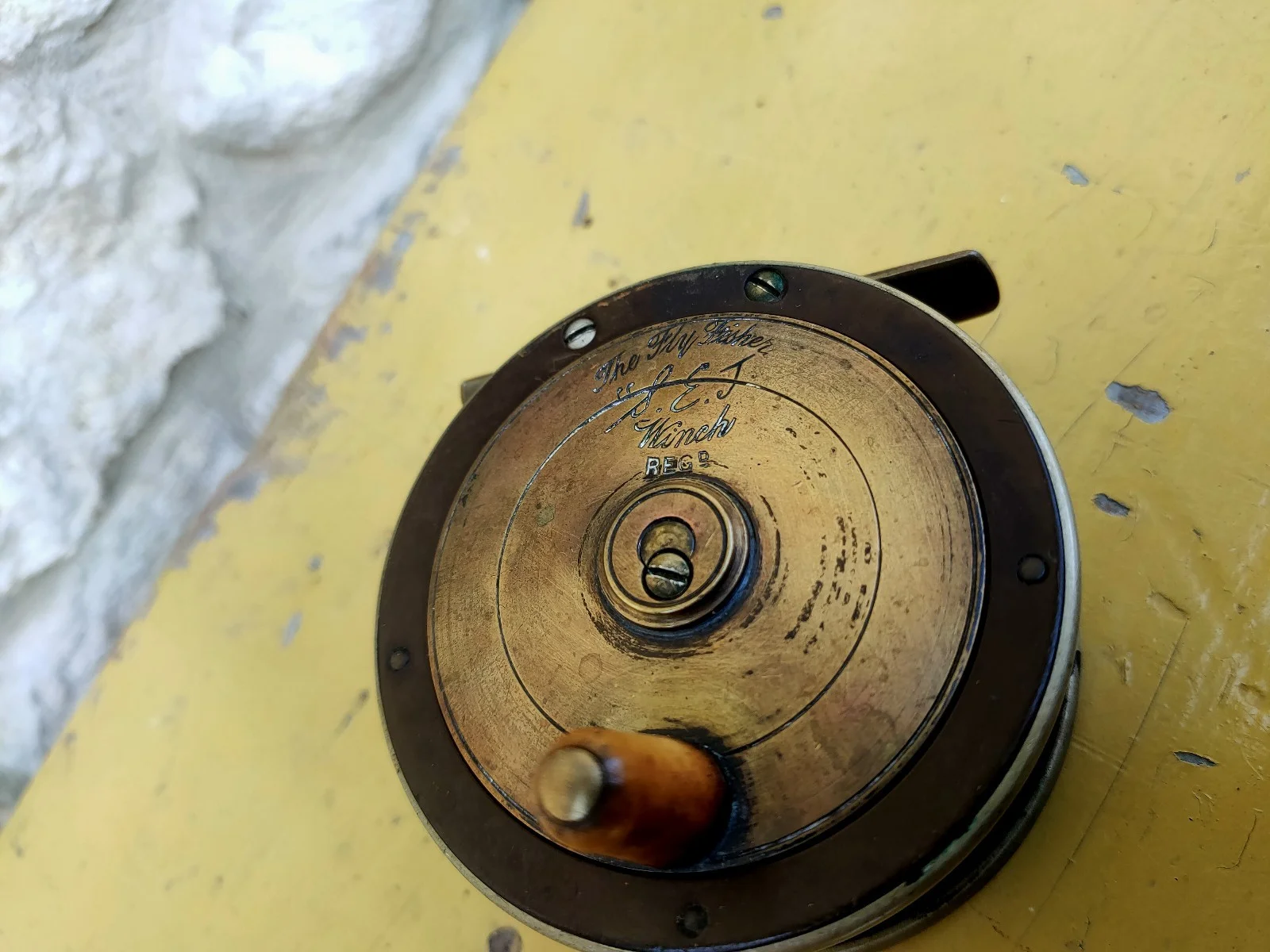 Antique Fly Fishing Reel S.E.J. "The fly fishers Winch" Rare Early Brass