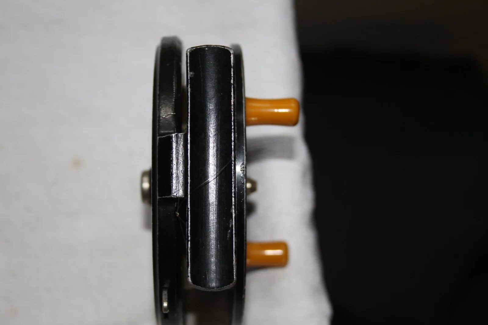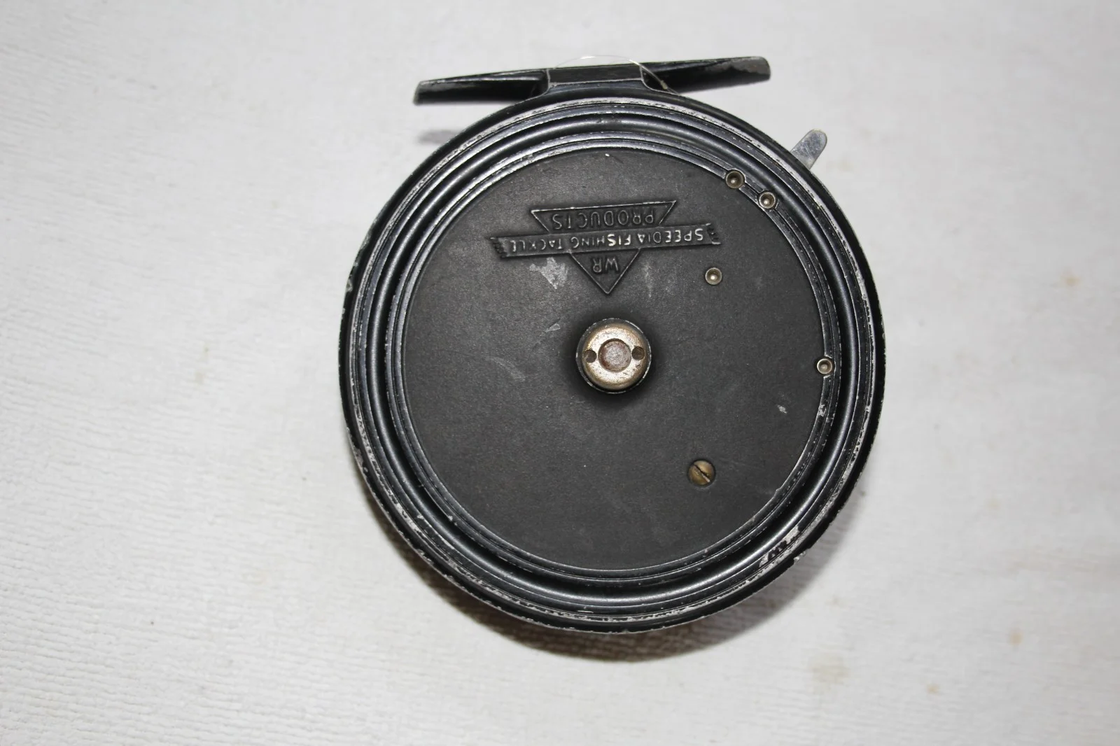 I am selling a W R Products Speedia 4 inch Centrepin Reel. This is the second of such a reel that I am Selling.This is the narrow drum version and has some paint loss on the foot and rim which can be seen in the photographs.This reel spins beautifully with no wobble and is a joy to use.It is loaded with new 4lbs Bayer Perlon line and comes with the case in the photographs.I am happy to answer any questions but please do not ask for a buy it now price as I always allow the auction to run its course.The buyer will not be disappointed.