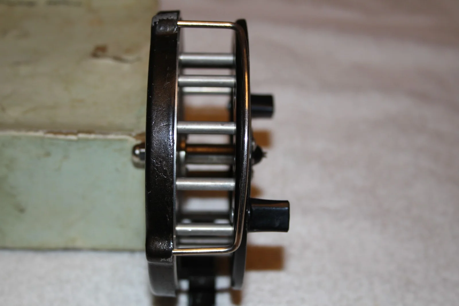 I am selling a Boxed Mordex Merlin 4 1/2 inch Centrepin Reel. This is the second of such a reel that I am Selling.This reel, unusually, comes with its original lineguard and has some paint loss, together with the usual water damage to the badge which can be seen in the photographs.This reel spins like a dream with no wobble, everything works perfectly and is a joy to use.I am happy to answer any questions but please do not ask for a buy it now price as I always allow the auction to run its course.The buyer will not be disappointed.
