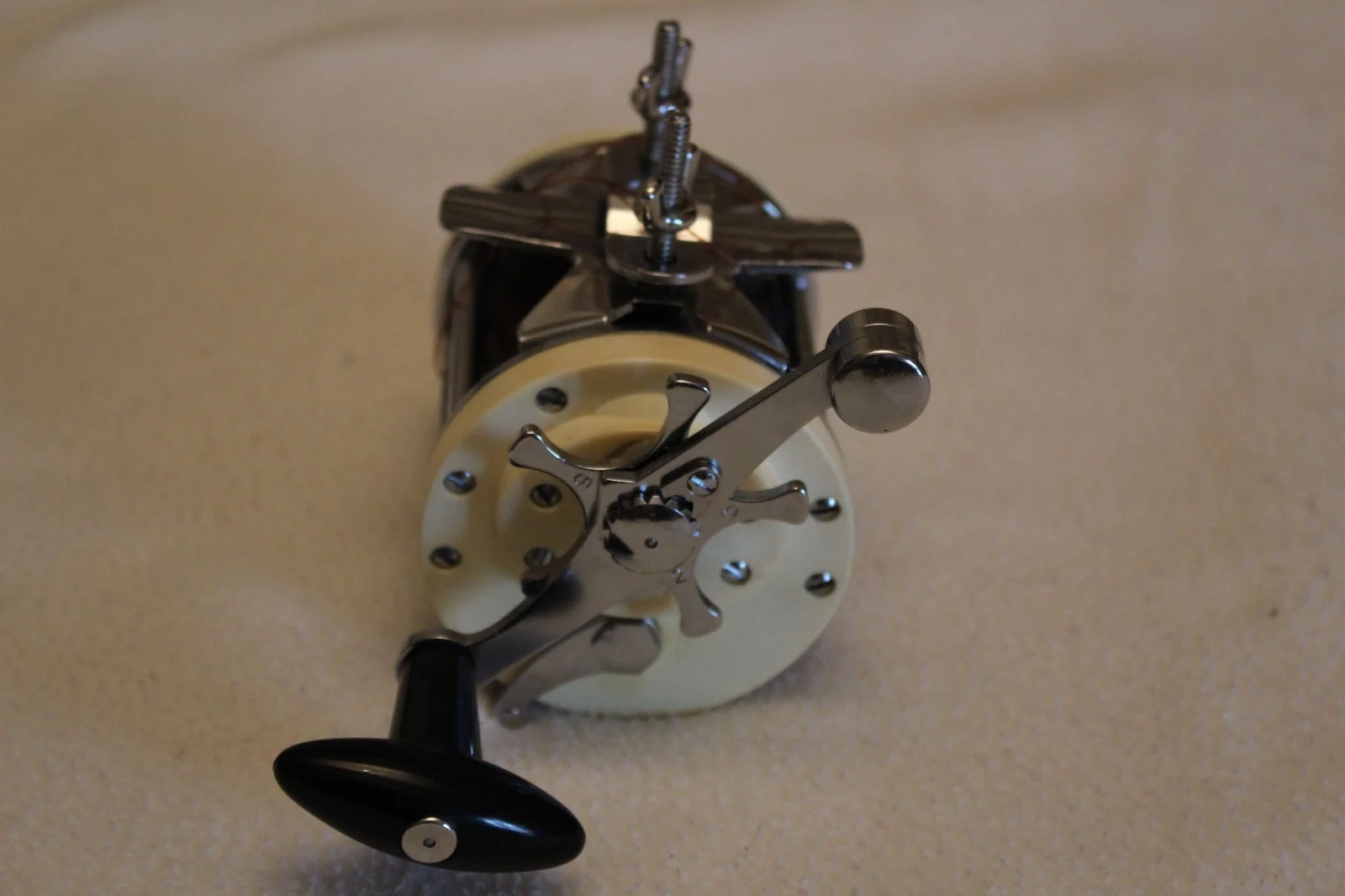 I have for sale a Boxed Garcia Mitchell 600 Beach Casting Multiplier Reel.This reel is in beautiful condition and everything works perfectly. It is in truly excellent condition with no damage.It comes with the original guarantee card, spanner and grease tube.The box edges are a bit scuffed.I am happy to answer any questions but please do not ask for a buy it now price as I always allow the auction to run its course. The buyer will not be disappointed.