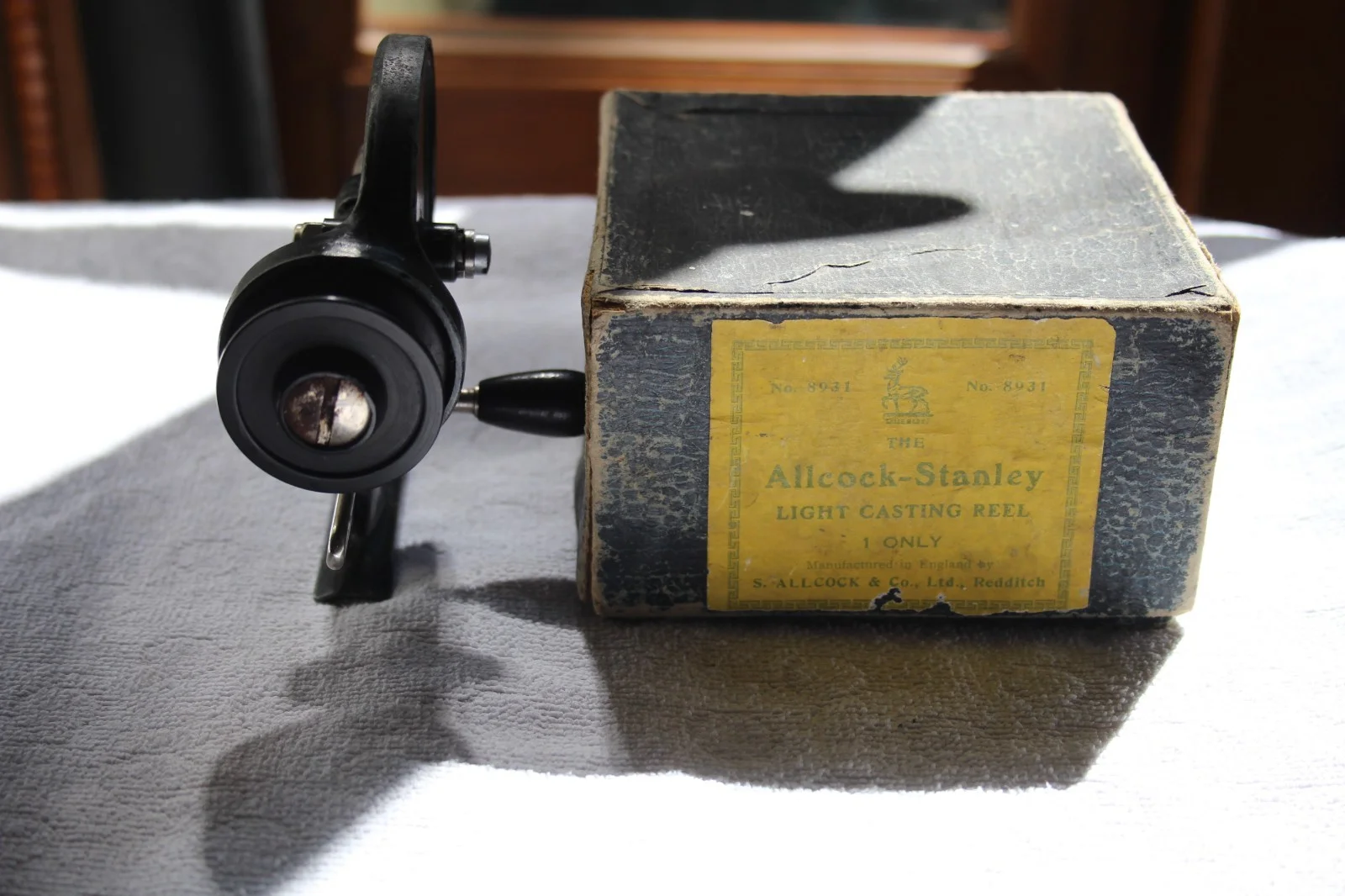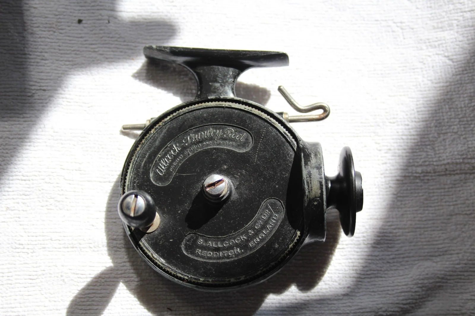 I have for sale a boxed antique Allcocks Stanley Threadline reel together with a 28 page Light Casting for all 9th Edition Handbook of the Allcock Stanley Light Casting Reel and the 98 page Limited Edition The Stanley Story Book which is signed by the Author John Stevenson..This is a proper Collectors item and is the forerunner of the modern Fixed Spool Reel. It's design allowed Anglers to use much finer lines and to cast further than with a Centrepin reel thus improving presentation and access to fish. The reel came into production in the early 1930's and revolutionised Angling.This reel is in good condition and everything works perfectly.It does however have some paint loss which is not uncommon in these "ancient" examples. This can be seen in the photographs.I am happy to answer any questions but please do not ask for a buy it now price as I always allow the auction to run its course. The buyer will not be disappointed.