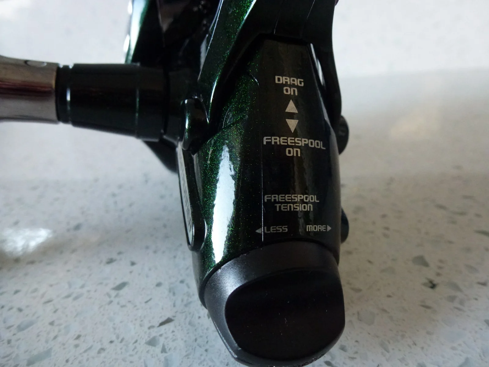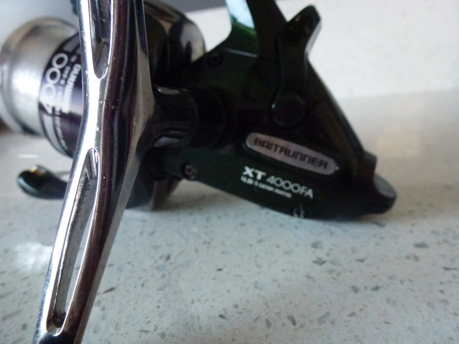 Shimano XT 4000 FA baitrunner in good condition with spare spool. Excellent baitrunner finished in metalic green no longer made.Thanks for looking