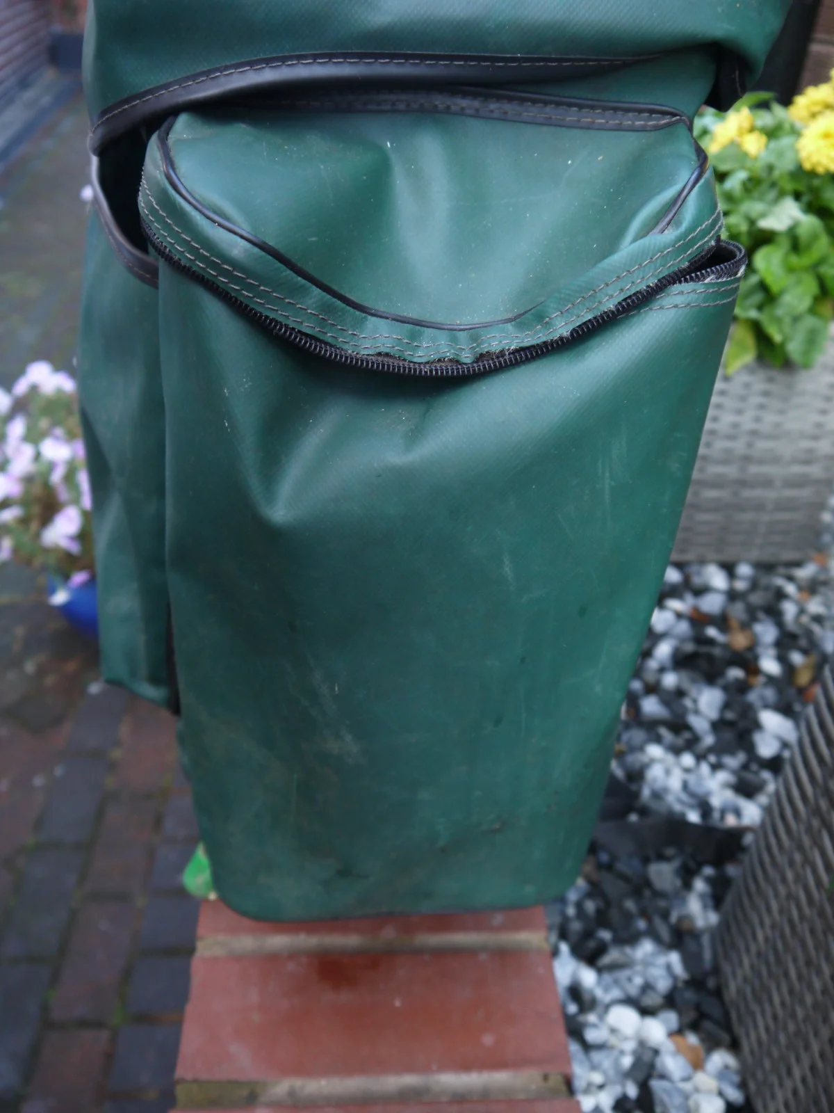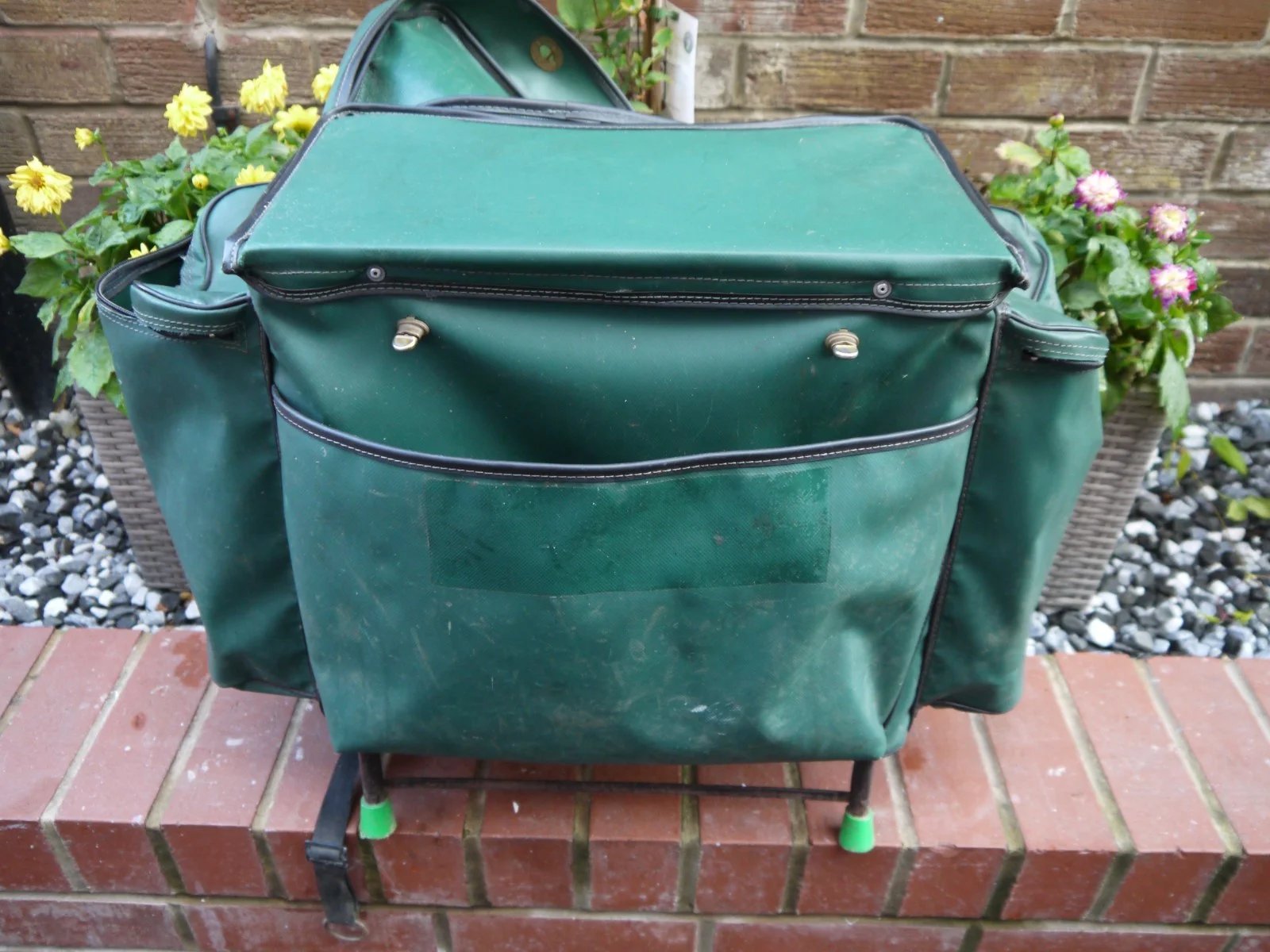 I have for auction my large fishing seat/box. Incorporated in it is a 'back pack' type carrying system with straps and buckles. It has two large side zipped compartments and one large open compartment at the from. The top 'flap' is kept in place by two twist fastenings. When that is lifted it reveals the seat board underneath. Lift that and you then gain entry into the body of the box. The skin of this object is a very tough type of synthetic 'rubber/plastic' stuff. The zips all work fine and there are no tears in the skin. It is quite lightweight for its size. There is a carrying strap system at the rear of the box which allows it to be carried on your back like a rucksack. The frame of the box is tubular steel and is in good used condition. Overall a nice fishing seat / box. It dimensions are:- 51cm High and 60cm wide. The seat area is 42cm X 24cm. Internal is 33cm H x 42cm W x 24cm across.I am selling this as I am now of an age where I would like to fish in a chair and not catty stuff around with me anymore.There is no makers mark on this, however 'Efgeeco' comes to mind. This is a good bit of kit especially if you are considering taking up angling. A lot of gear can be stored in this. This is far better than some of the cheap Chinese rubbish found on the internet.My name and old address is on the underside of the top seat which could easily be erased with whatever.I can arrange a viewing if required.I have a good reputation for accurate selling so please feel confident when bidding. (see feedback)It comes from a smoke fee home.Please see my other articles for auction on Ebay.Due to its size, collection only however I would consider posting at you expense.