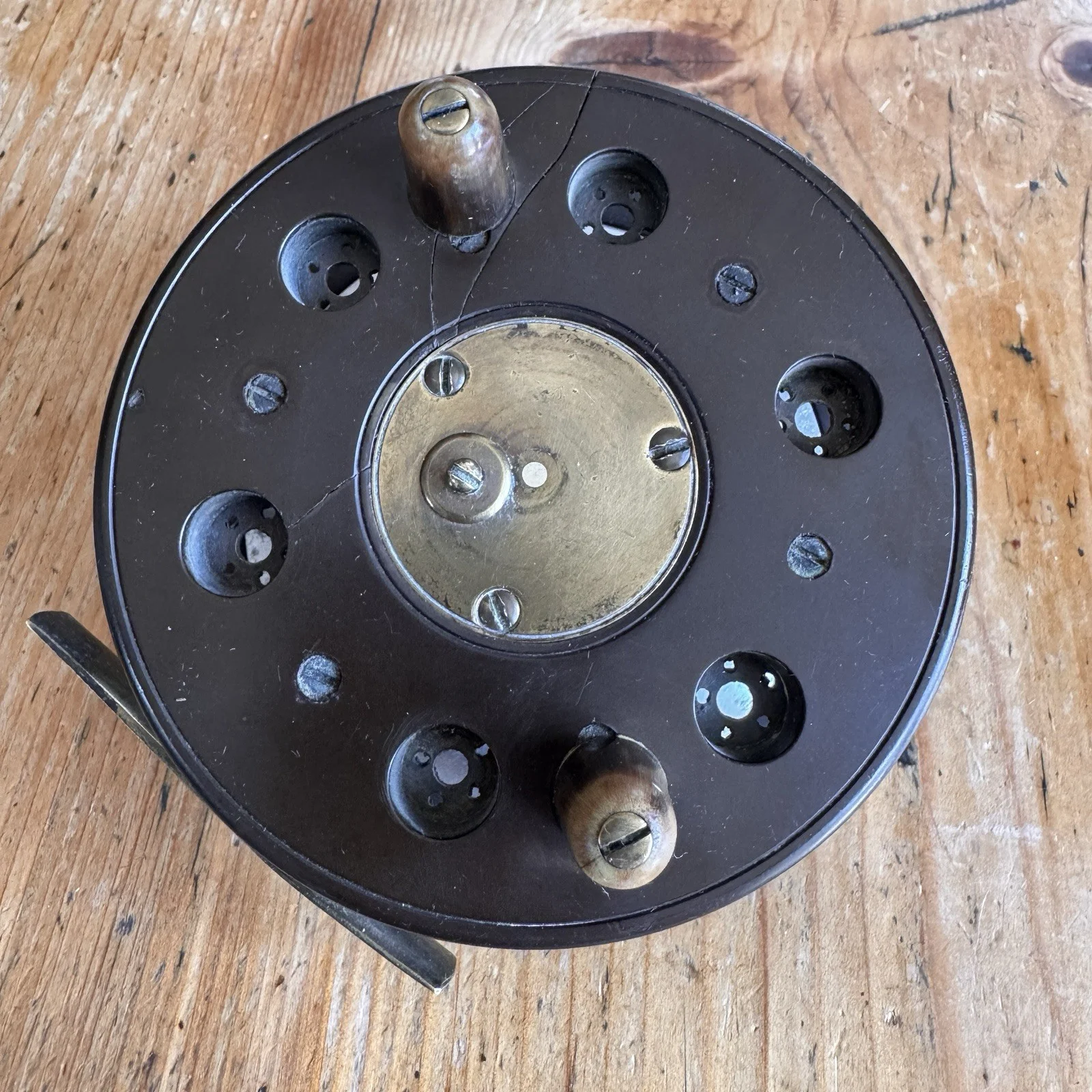 A very rare reel - I have never seen another. I have been told this model was made in the 1880’s.A 4” reel, brass and ebonite with horn handles; action and check/drag are in good working order - remarkable for a 140 year old reel.There is some damage to the ebonite as shown on the photos, but despite that it is still a highly collectible item.A genuine auction - no reserve above the starting bid.