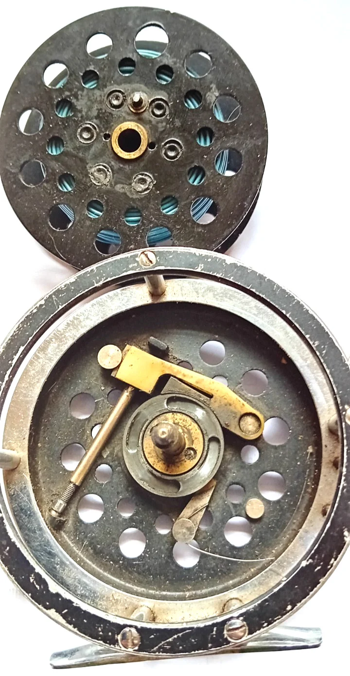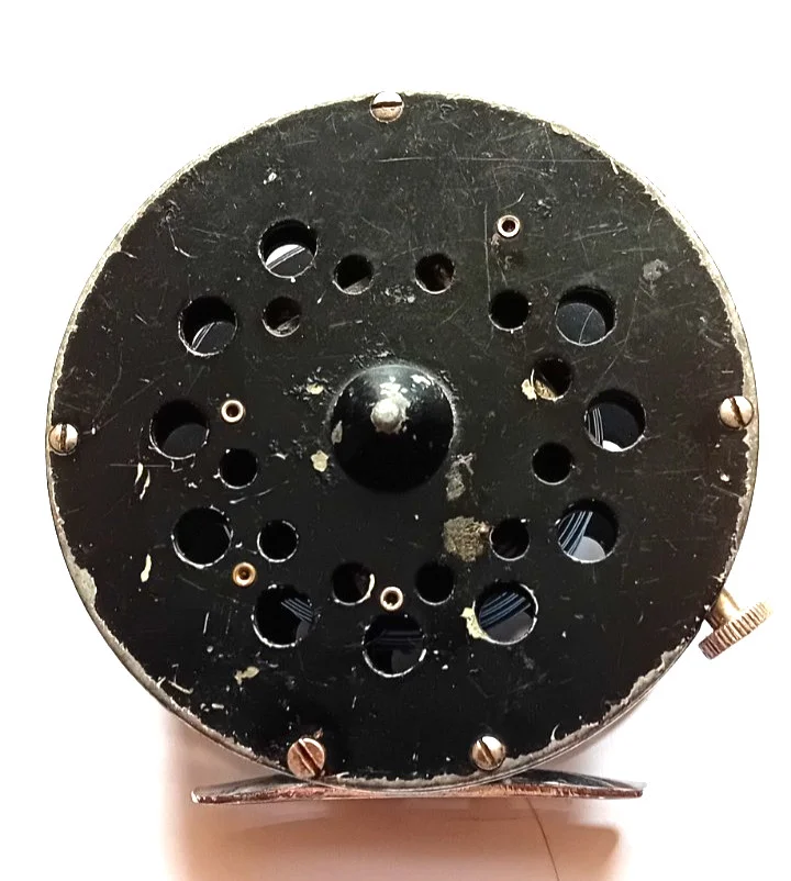 Vintage fly reel with knurled knob braking system & moulded winder