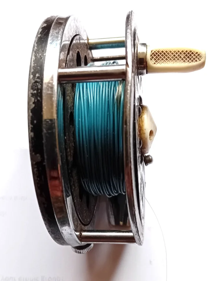 Vintage fly fishing reel with line