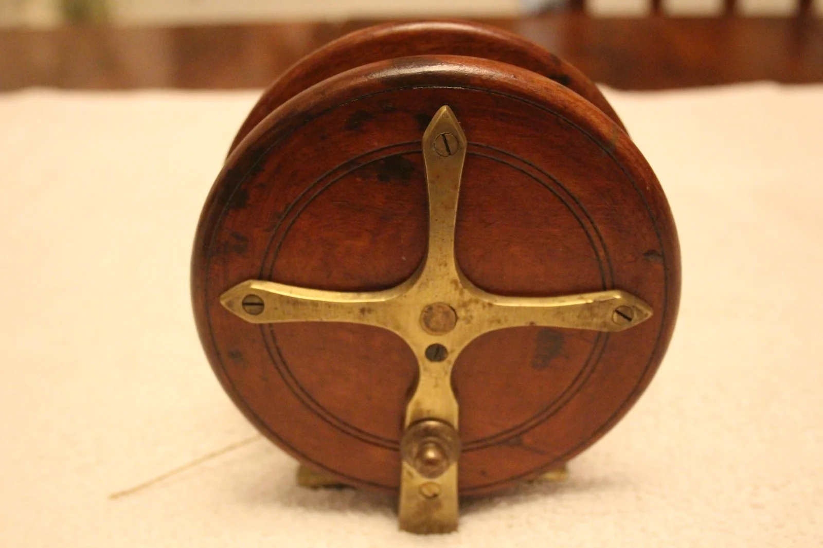 8. 5 " Wood and Brass Nottingham Starback Centrepin Reel